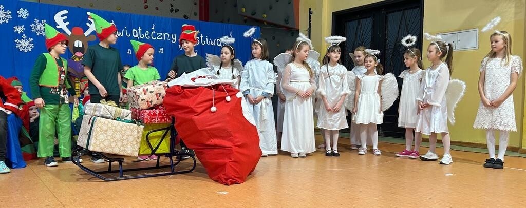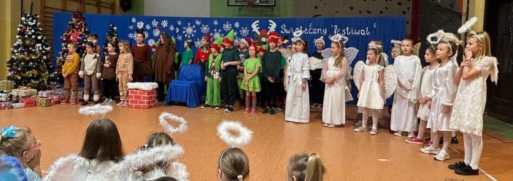 Festiwal rozpoczęły klasy 1b i 3d przedstawieniem „Pomocnicy Świętego Mikołaj”, w którym elfy i aniołki musiały rozwiązać problem z dostarczaniem prezentów. Następnie każda z klas 1-3 zaprezentowała przygotowany świąteczny utwór. Uczniowie zaśpiewali kolędy, pastorałki oraz inne piosenki o tematyce związanej ze zbliżającymi się świętami. Wzruszeń i radości było mnóstwo.