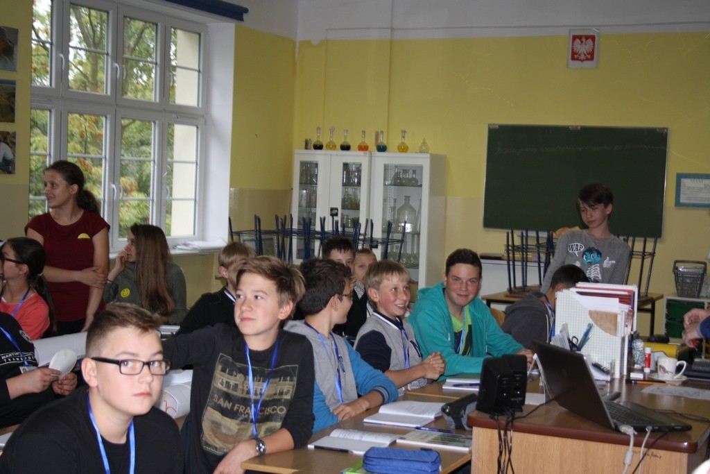 Drugiego października 2015r. obchodziliśmy w szkole Światowy Dzień Uśmiechu. Uczniowie mieli za zadanie przygotować papierowe, uśmiechnięte buźki, które przyczepiali do swoich koszulek. Bardzo się cieszymy, że większość potraktowała zadanie poważnie i dzięki temu otrzymała dużą ilość punktów. Samorząd Uczniowski wraz z panią A. Jankowską i panem A. Łakockim sprawdzał przygotowanie klas.