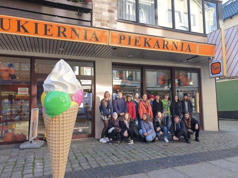 W miniony piątek grupa projektowa Erasmus+ z klasy 8a, 8b i 7d wybrała się na jesienny spacer śladami średniowiecznego miasta Lęborka. Naszym przewodnikiem był pan Jan Kiśluk, który bardzo ciekawie opowiadał o historii naszego miasta. Uczniowie z grupy Erasmus+ przedstawią zdobyte informacje o naszym mieście i lokalnych produktach w języku angielskim na spotkaniu międzynarodowym online z naszymi partnerami z Luksemburga, Portugalii, Hiszpanii, Włoch i Macedonii. Nasz jesienny spacer umiliła nam przepiękna pogoda, humory dopisywały, a wspólna pizza na zakończenie naszego projektowego spotkania smakowała wyśmienicie.