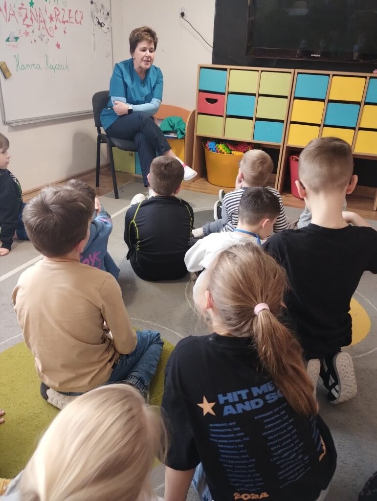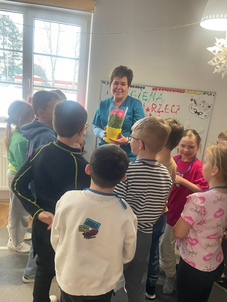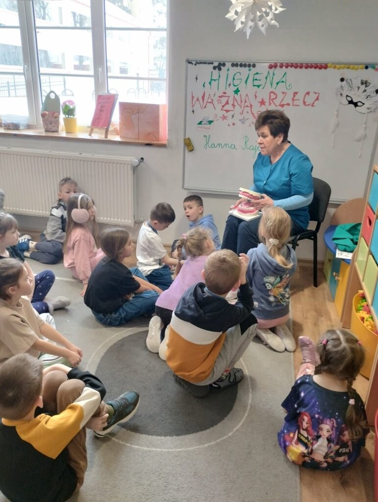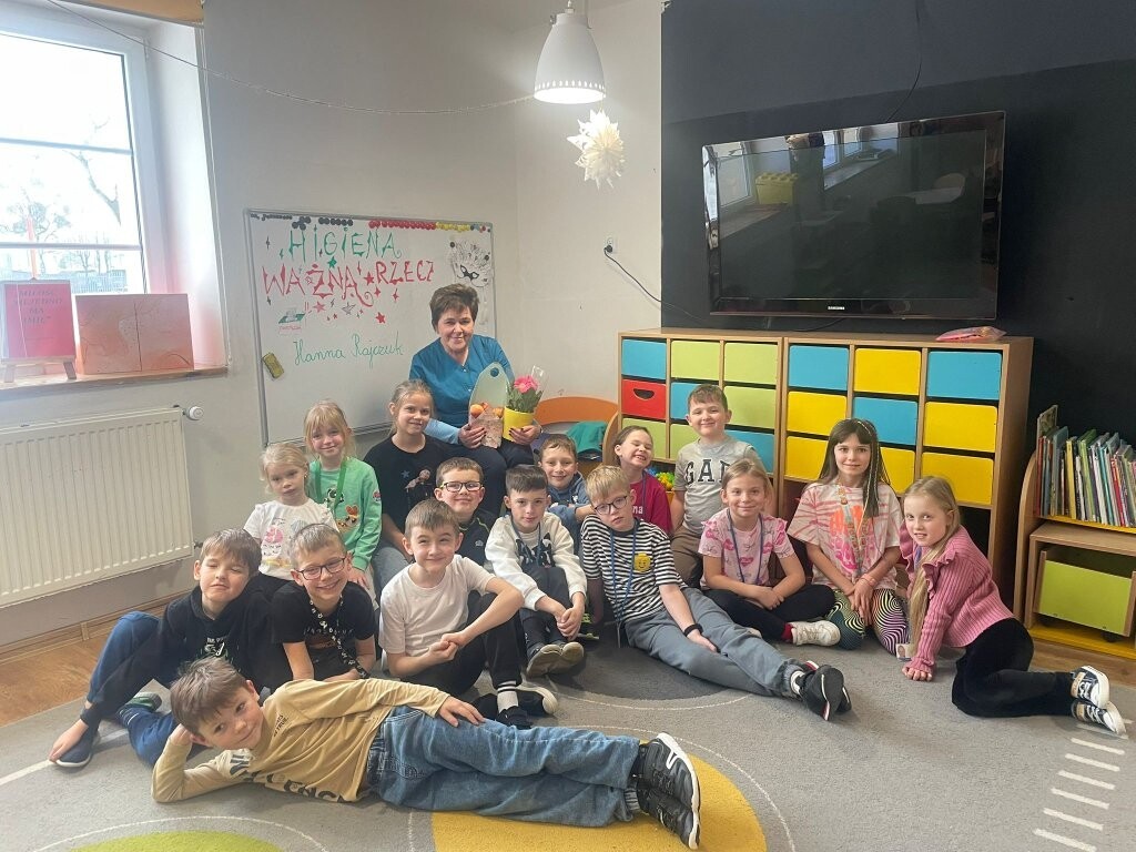 O tym, że higiena powinna być jednym z najważniejszych elementów zdrowego funkcjonowania człowieka, nie trzeba chyba nikogo przekonywać. W minionym tygodniu uczniowie uczęszczający do świetlicy gościli panią Hannę Rajczuk – naszą szkolną pielęgniarkę. Pani Hania przypomniała uczniom o podstawowych zasadach utrzymania higieny ciała, włosów, paznokci i skóry. Na specjalnym modelu stomatologicznym pani pielęgniarka zaprezentowała jak powinno wyglądać dbanie o zęby - a tym samym o piękny uśmiech. Uczniowie z zaciekawieniem wysłuchali wykładu na temat profilaktyki zdrowia, zadawali pytania, a w ramach podsumowania zajęć rozwiązali krzyżówki sprawdzające ich wiedzę.
