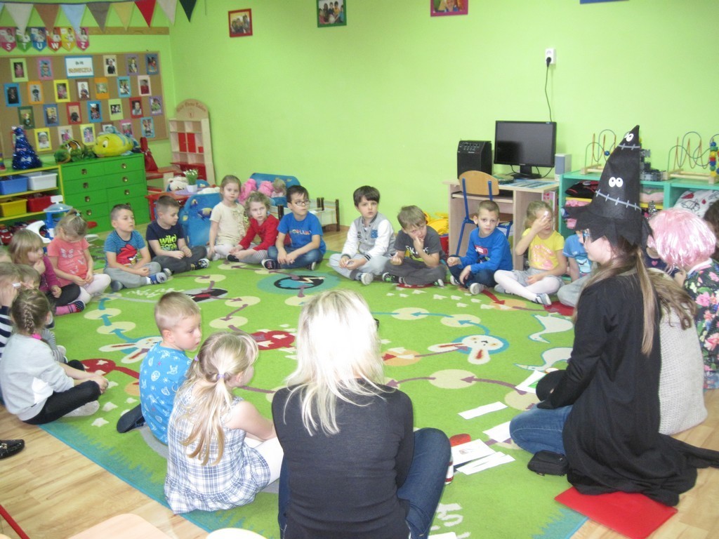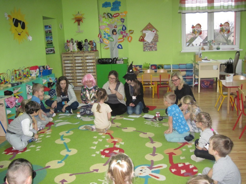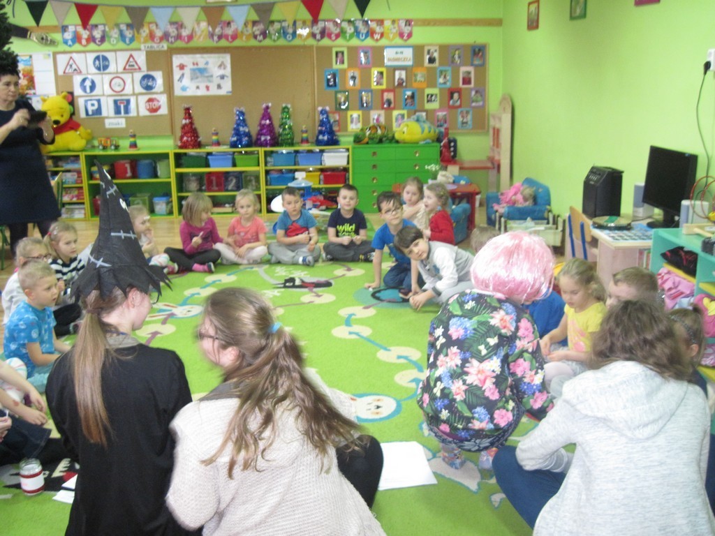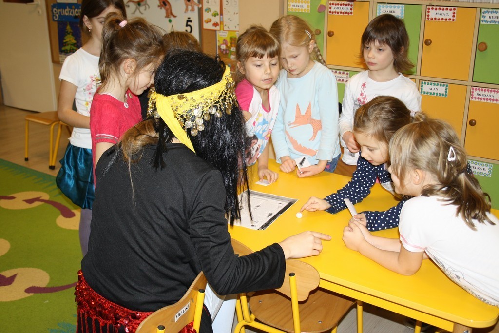 5-latki przeniosły się do tajemniczego świata czarów i fantazji, wysłuchały zabawnych andrzejkowych wierszyków, z wylosowanych numerków poznały, co spotka je w najbliższym czasie. Z pięknego serca wywróżyły sobie imię przyszłej sympatii, dowiedziały się, jakiego koloru będzie miał oczy ich wybranek/ wybranka. Na zakończenie miłego spotkania otrzymały kolorowankę z motywem andrzejek.