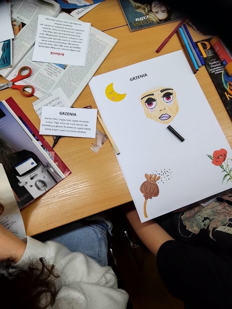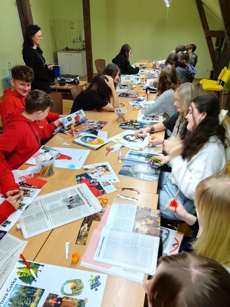 W miniony piątek klasa VIIb uczestniczyła w zajęciach w Miejskiej Bibliotece Publicznej w Lęborku. Spotkanie pod tytułem "Horror i makabra. Od Grimmów do kaszubskich bajek ludowych - warsztaty", bardzo zainteresowało naszą młodzież. Po wysłuchaniu jak bardzo bajki zmieniały się na przestrzeni dziejów, uczniowie dowiedzieli się jak opowieści te były przekazywane i czemu służyły. Na zakończenie siódmoklasiści obejrzeli autorski film stworzony przez lęborczan, a aby móc się czym pochwalić, pracowali wspólnie nad kolażami przedstawiającymi kaszubskie demony.