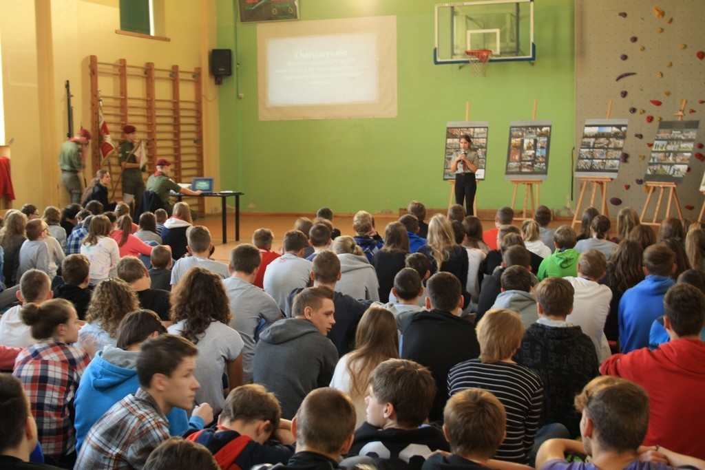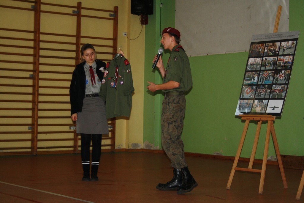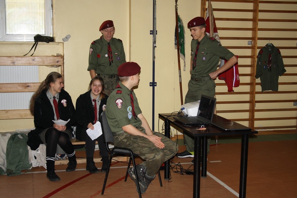 Podczas spotkania uczniowie klas I i II zostali zapoznani z działalnością drużyny, która jest najstarszą drużyną lęborskiego hufca. Młodzież należąca do niej aktywnie uczestniczy w życiu harcerskim, swoje pasje realizuje w dziedzinach takich jak: survival, alpinistyka czy spadochroniarstwo. Harcerze zaprezentowali swój sztandar oraz strój harcerski. Gimnazjaliści obejrzeli również prezentację multimedialną.