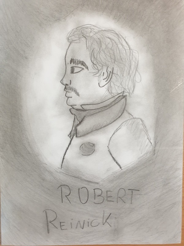 Zadanie uczniów w kategorii klas 4-6 polegało na wykonaniu portretu wybranego artysty oraz opis w języku niemieckim sportretowanej postaci. Takie zadanie wykonała Agata z kl. 5a, wykonując portret i opis niemieckiego artysty Roberta Reinick.