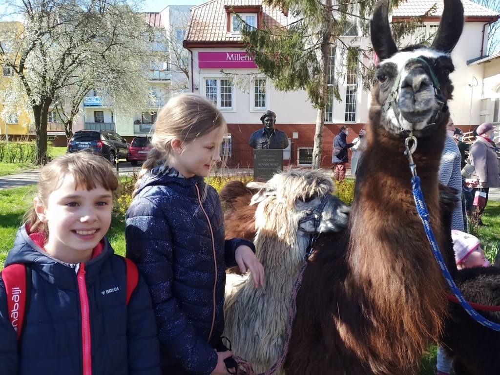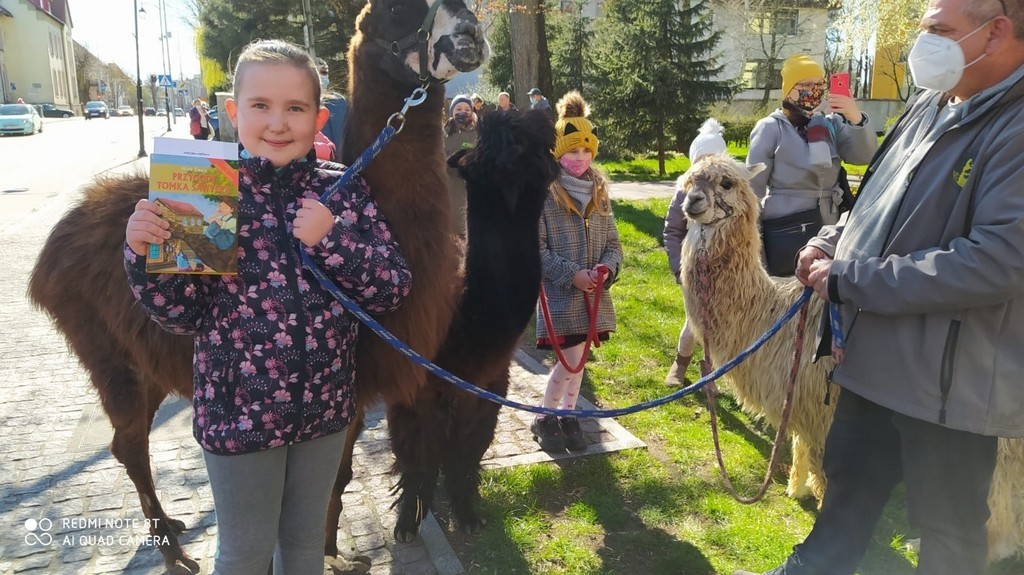 Piątkowe popołudnie obfitowało również w inne atrakcje związane z Dniem Książki. Na ulicy Staromiejskiej i przy budynku biblioteki można było spotkać Kota w Butach oraz prawdziwą lamę i alpaki. Drzewo, ławeczka oraz żabki na fontannie zostały przyozdobione w specjalnie „wydziergane” na tę okazję ozdoby z kolorowej włóczki.
