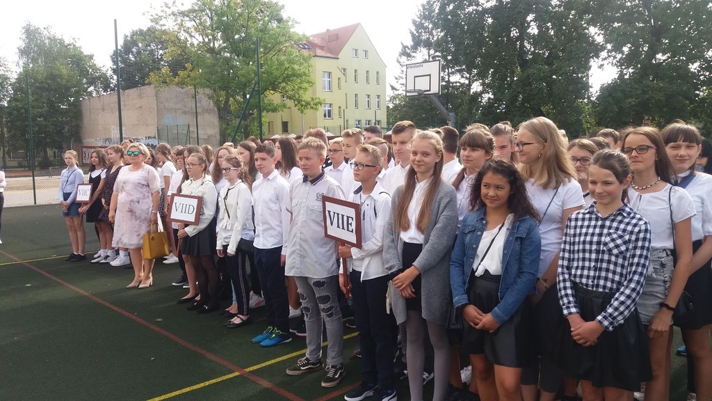 Po wakacyjnej przerwie, 2 września 2019r. uroczyście powitaliśmy nowy rok szkolny. O godz.9.00 na szkolnym boisku spotkali się najmłodsi - uczniowie klas pierwszych, drugich i trzecich, by w towarzystwie swoich wychowawców i nauczycieli rozpocząć rok szkolny 2019/2020. Po odśpiewaniu hymnu narodowego glos zabrała pani dyrektor Grażyna Ruszkowska, która życzyła wszystkim wielu sukcesów i wytrwałości w nadchodzących miesiącach . Szczególnie ciepło zostali przywitani pierwszoklasiści, którzy dopiero zaczynają edukację w murach naszej placówki. Następnie, o godz.10.00 nowy rok szkolny zainaugurowali uczniowie klas siódmych i ósmych. Podczas uroczystości nie zabrakło akcentów historycznych, związanych z okrągłą, osiemdziesiątą rocznicą wybuchu II wojny światowej.