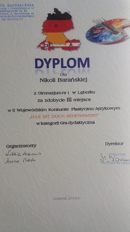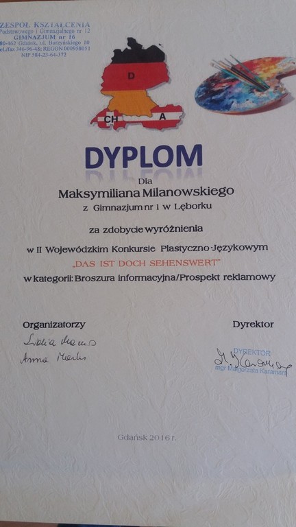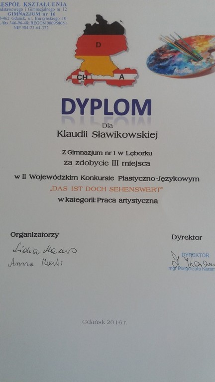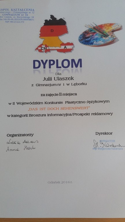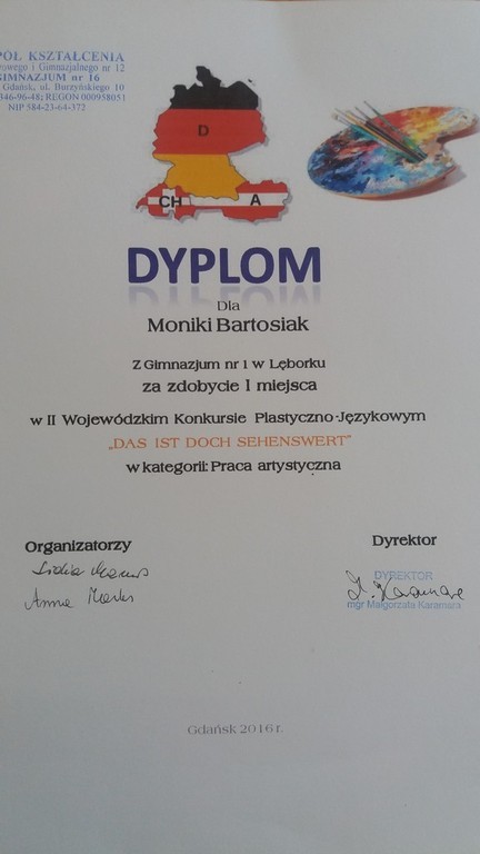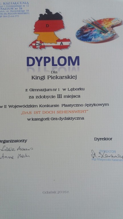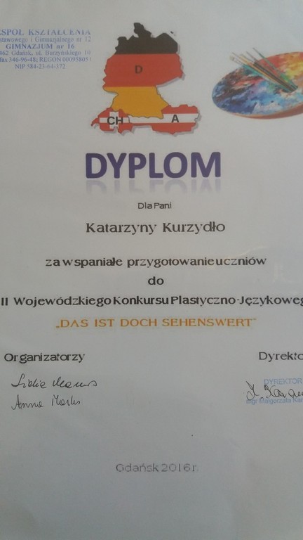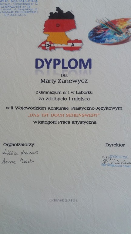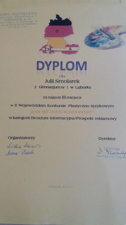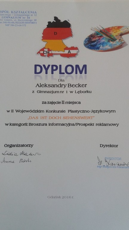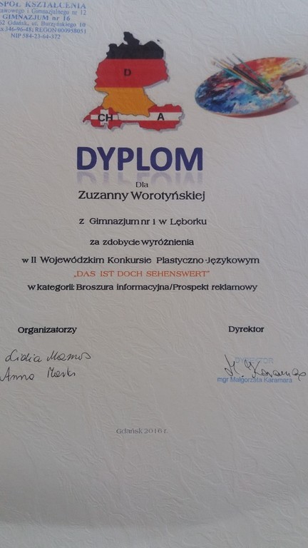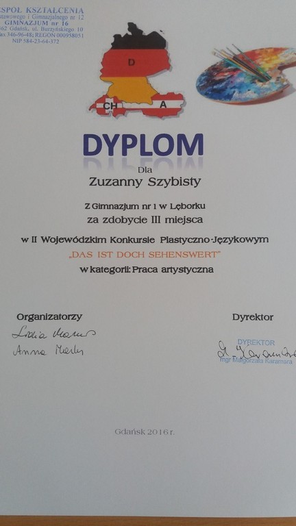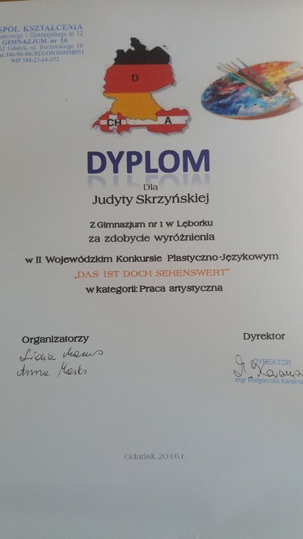 Sukcesy naszych uczniów w II Wojewódzkim Konkurs Plastyczno-Językowym , pt. „DAS IST DOCH SEHENSWERT- TO WARTO ZOBACZYĆ”.