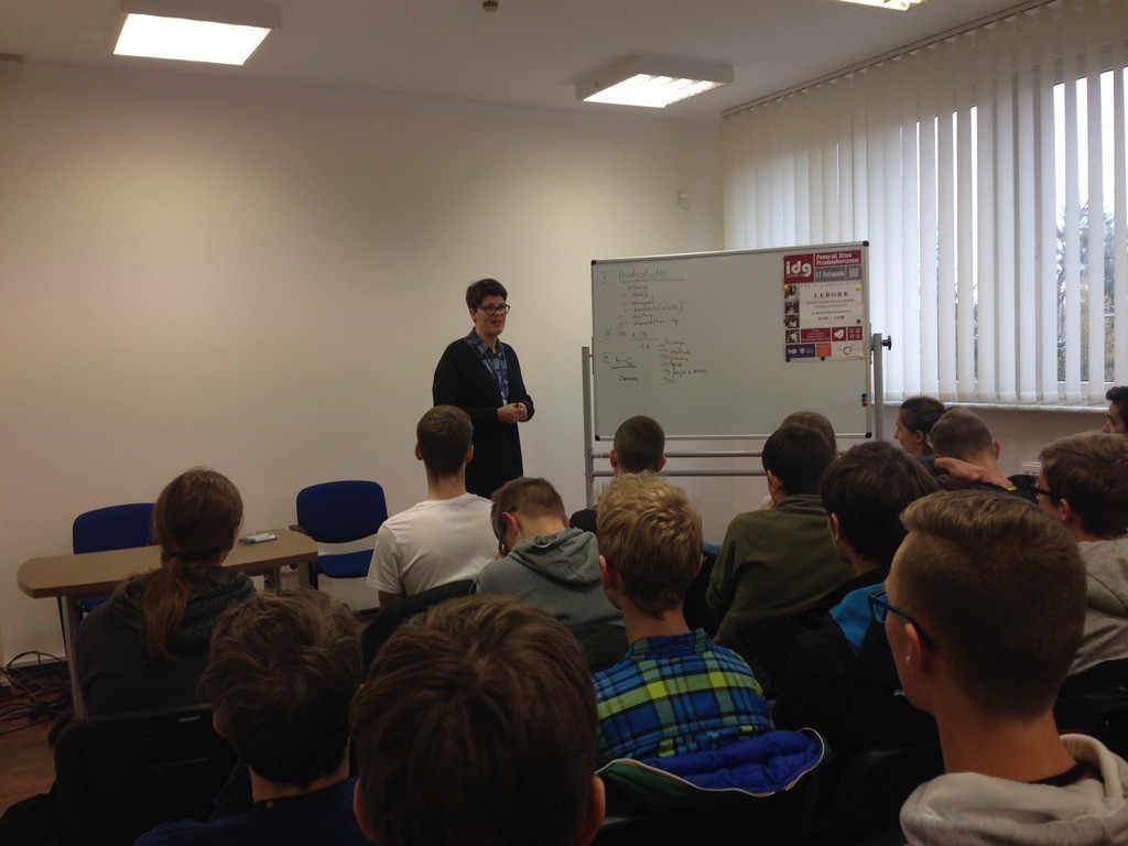 Wizyta przebiegła w bardzo miłej atmosferze a fachowa wiedza pani Cieślińskiej, pasja z jaką opowiadała o swojej pracy ukazały młodzieży szeroki wachlarz możliwości rozwoju i ewentualnej pracy w US.