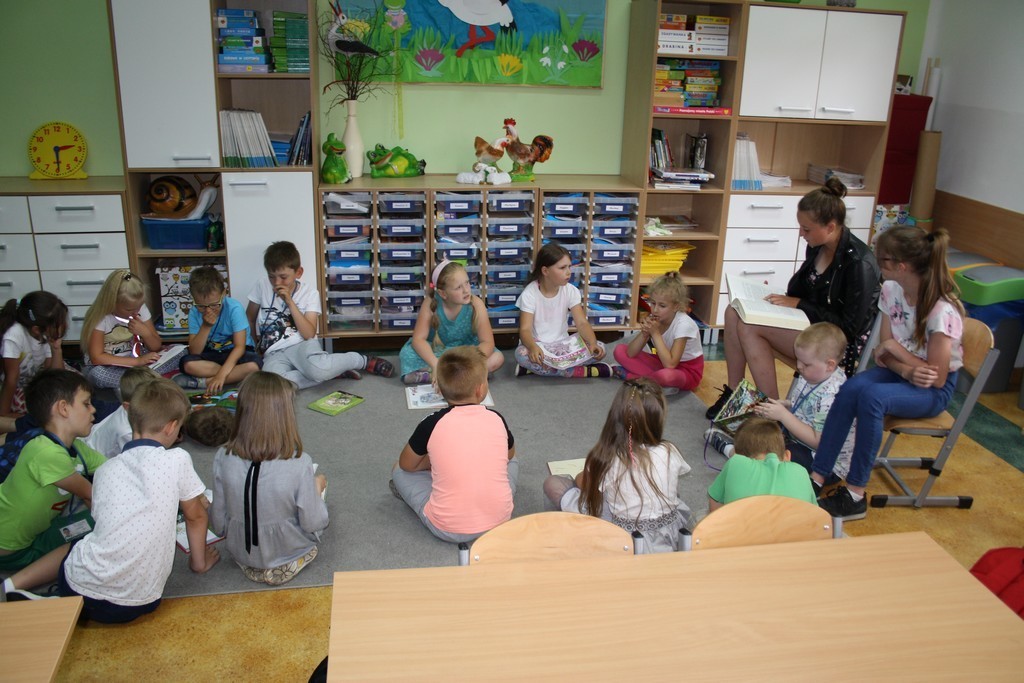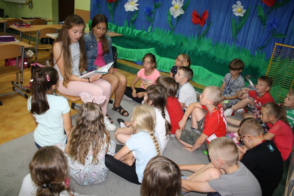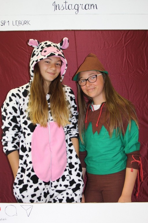 11 czerwca w bibliotece szkolnej pojawili się również uczniowie w przebraniu książkowego bohatera – i tak można było spotkać się z Roszpunką, Czerwonym Kapturkiem, Elsą, Smerfetką, Robin Hoodem czy Pippi Langstrumpf… Nie zapomnieliśmy również o naszych najmłodszych uczniach – tego dnia uczennice z klas VIIe i IIc czytały pierwszoklasistom baśnie. W holu szkoły pojawiła się również gazetka prezentująca ciekawostki związane z książką.