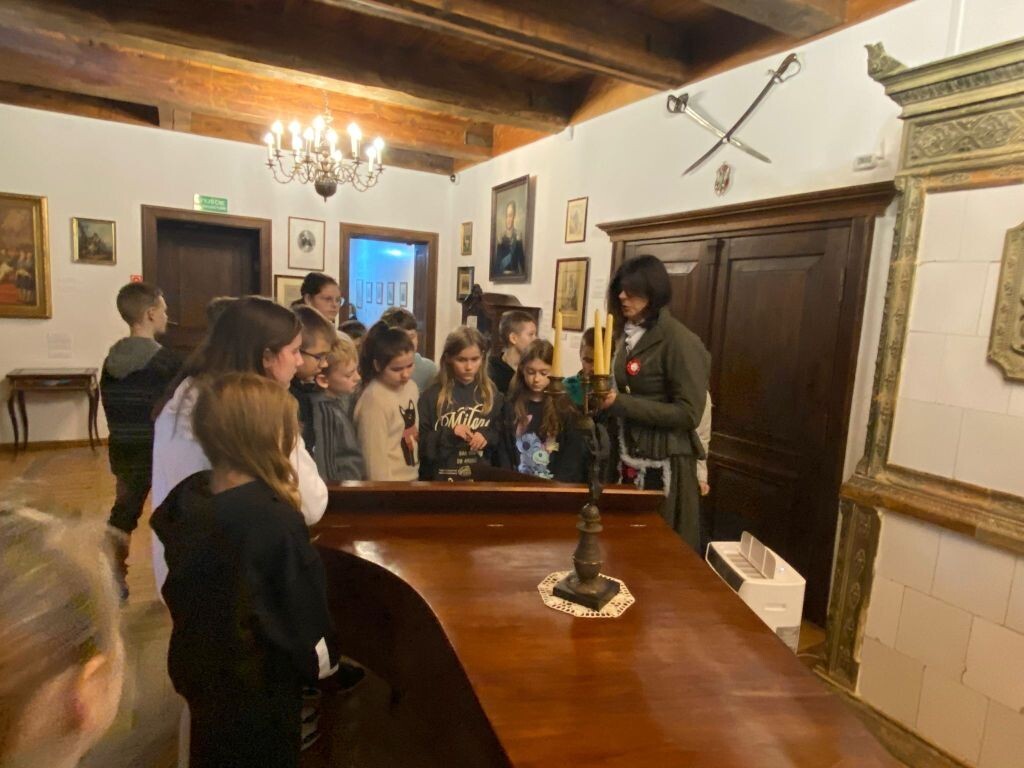 Klasy IVa i IVc wybrały się na wycieczkę do Bedomina. Urokliwe położenie dworku w Bedominie ukazało nam wszystkie barwy jesieni. Otoczenie dworu o tej porze roku stanowią przepięknie ubarwione różnymi kolorami liście drzew. Uczniowie wzięli udział w lekcji historii przygotowanej w miejscu narodzin Józefa Wybickiego. Z pozoru mały dworek kryje w sobie wiele tajemnic i pamiątek po rodzinie Wybickich. Dla uczniów wizyta ta była szczególna, bo urodzony w Bedominie twórca słów polskiego hymnu jest patronem naszej szkoły. Urocze wnętrza, zgromadzone eksponaty pozwoliły przenieść się do czasów z XVIII wieku.