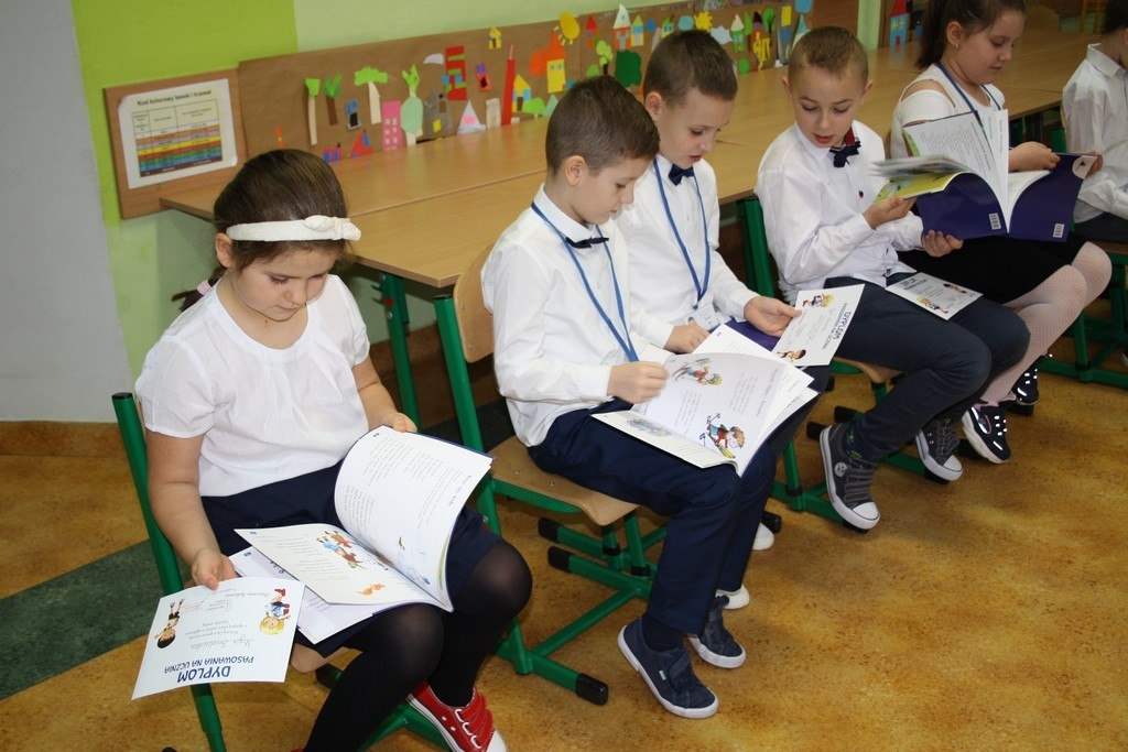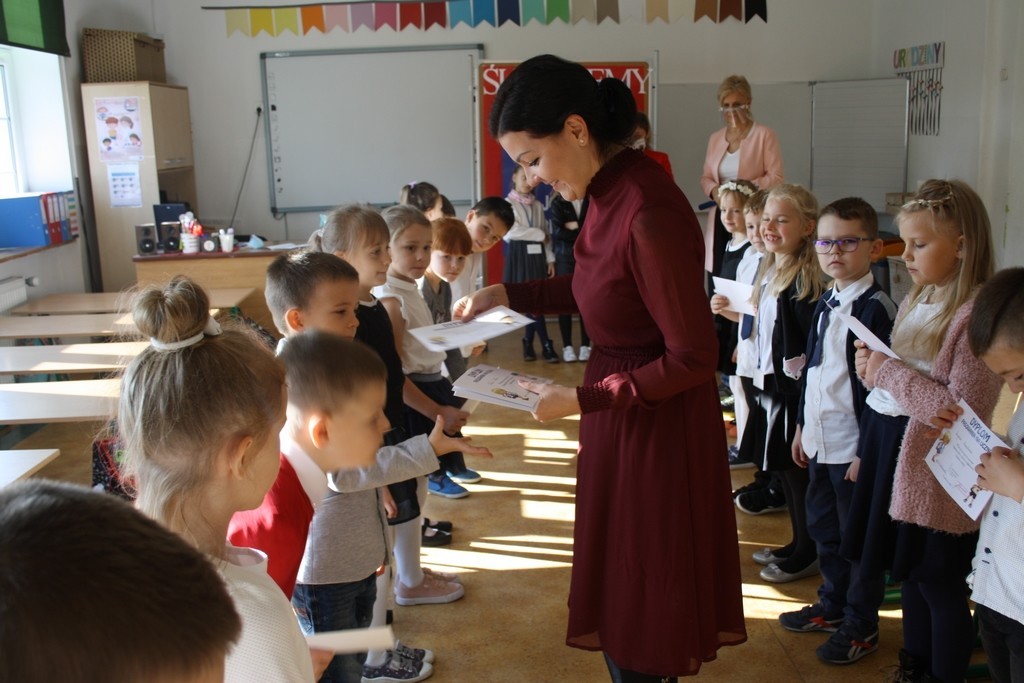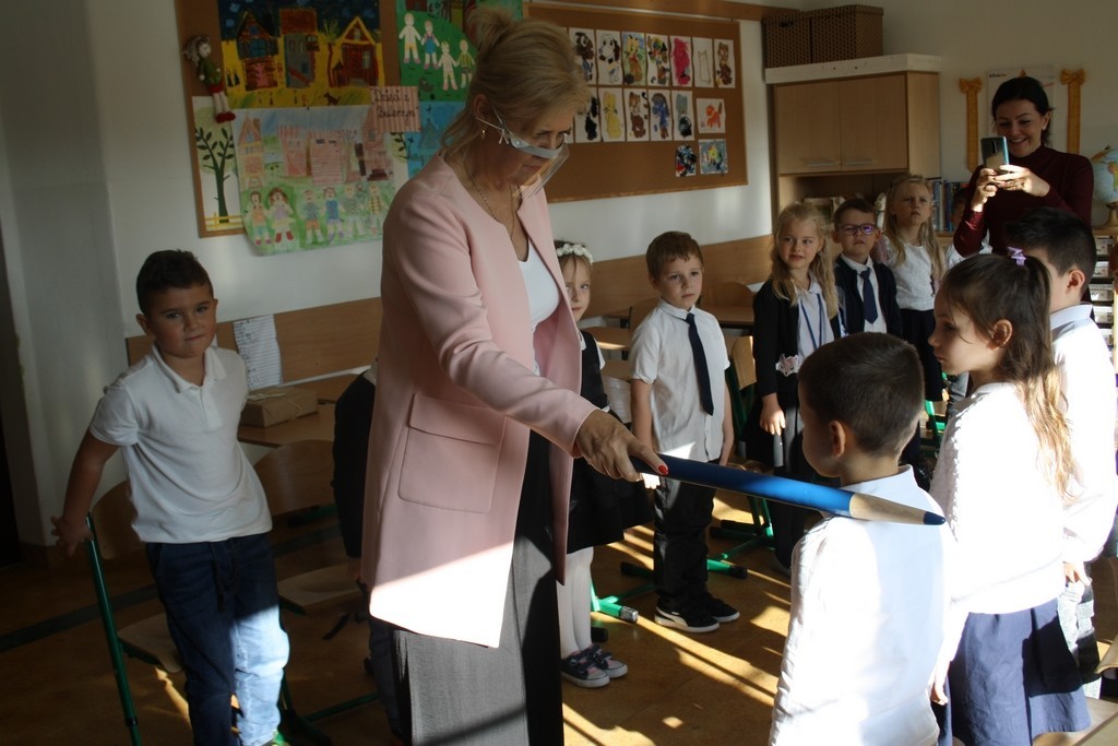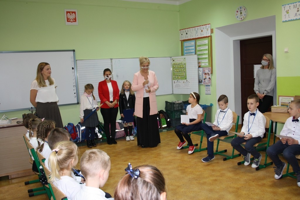 Od momentu wejścia w szkolne progi tworzycie razem z nami wielką, szkolną rodzinę. Wiecie, że w rodzinie każdy obok praw, ma także obowiązki, które powinien sumiennie wypełniać. Naszym wspólnym obowiązkiem jest przede wszystkim pilna nauka. Waszymi przewodnikami po ogromnej krainie wiedzy będą nauczyciele i rodzice. Również starsi koledzy, chętnie podadzą Wam pomocną dłoń. Będziemy spotykać się w szkole podczas pracy i zabawy. Korzystajcie śmiało z naszych dobrych rad i pomocy. Cieszymy się, że powiększyła się nasza szkolna rodzina. Mamy nadzieję, że każdy dzień spędzony w szkole przyniesie Wam wiele radości. Życzymy Wam sukcesów w nauce i wzorowego, pierwszego szkolnego świadectwa.