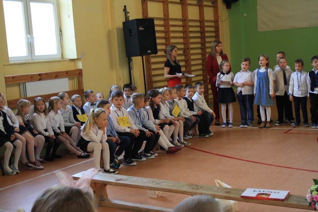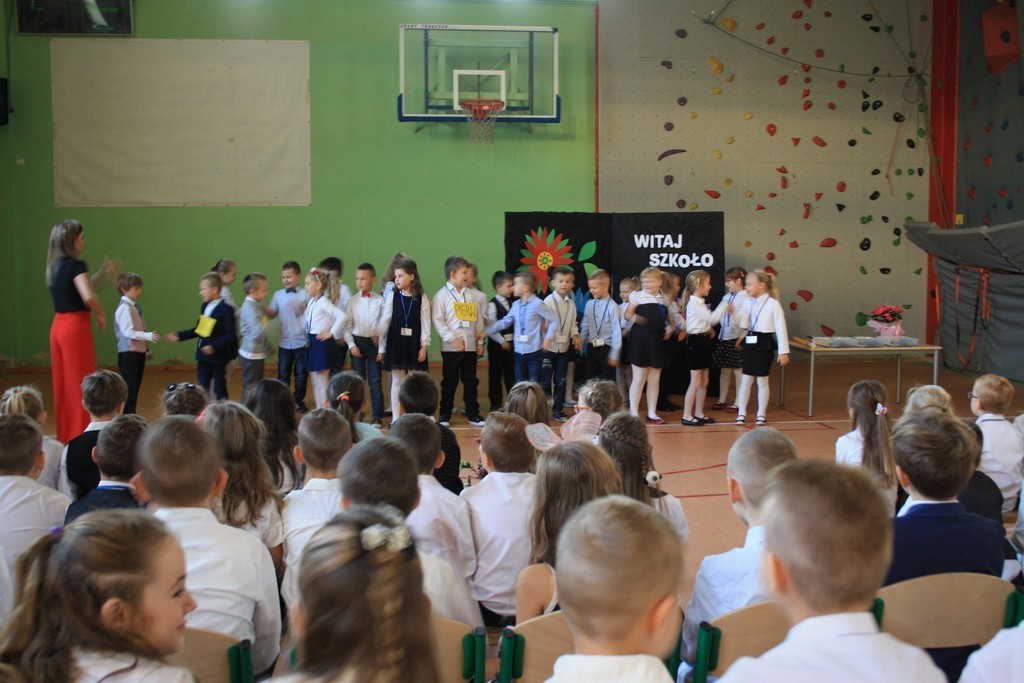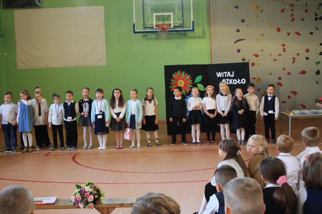 Na zakończenie uczniowie klasy drugiej zaprezentowali młodszym kolegom i koleżankom kilka wierszy oraz wręczyli upominki. Pierwszoklasistom życzymy powodzenia w ich szkolnych zmaganiach. Mamy również nadzieję, że będą oni godnie reprezentować naszą szkołę.