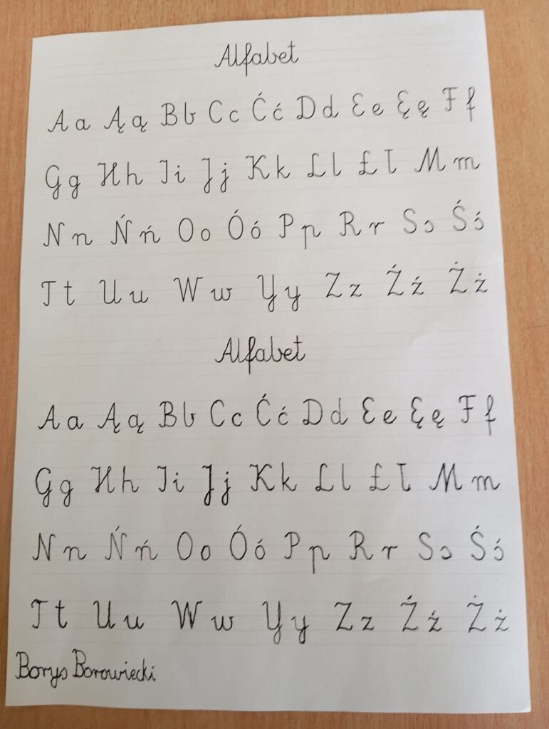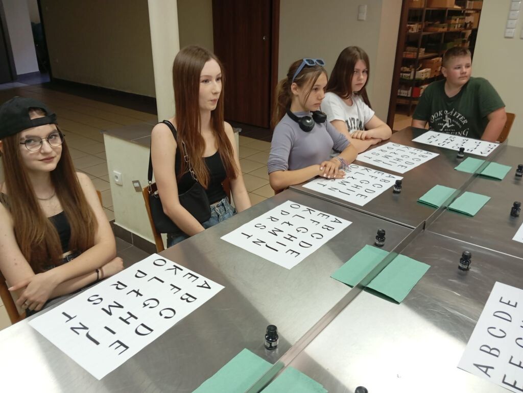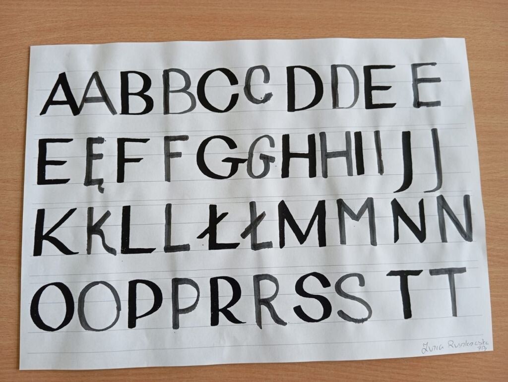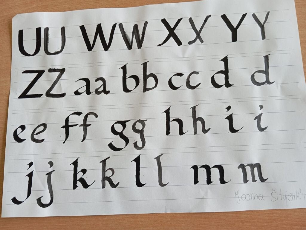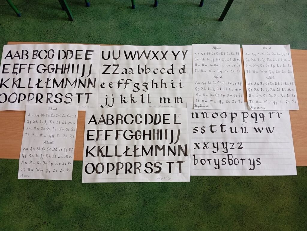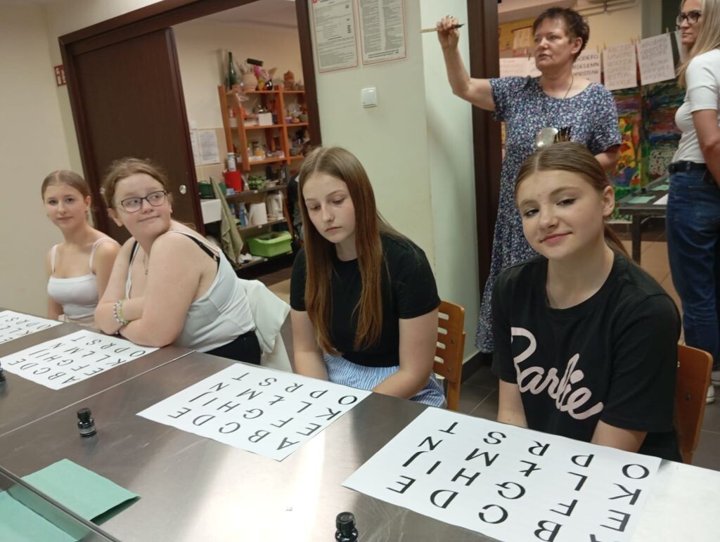 22 maja 2024r. uczennice i uczniowie: VII B, VI A i IV C zmierzyli się z umiejętnością pięknego pisania drewnianym "piórem". Gościliśmy w lęborskim Muzeum na warsztatach pięknego pisania, czyli kaligrafii. Mogliśmy potrenować pisanie majuskuł i minuskuł oraz pisma szkolnego. Uczniowie przyznają, że pisanie piórem ze stalówką jest dzisiaj sztuką. Zmagania przede wszystkim z odpowiednim naciskiem obsadki na papier uwieńczone zostały kartami wypełnionymi poprawnym pismem. Najlepszym w estetycznym, zgodnym z normami zapisem kolejnych liter, okazał się Borys Borowiecki.
