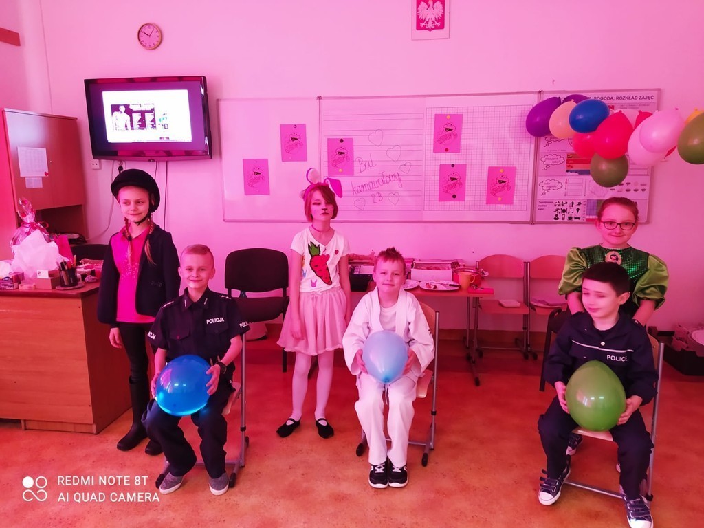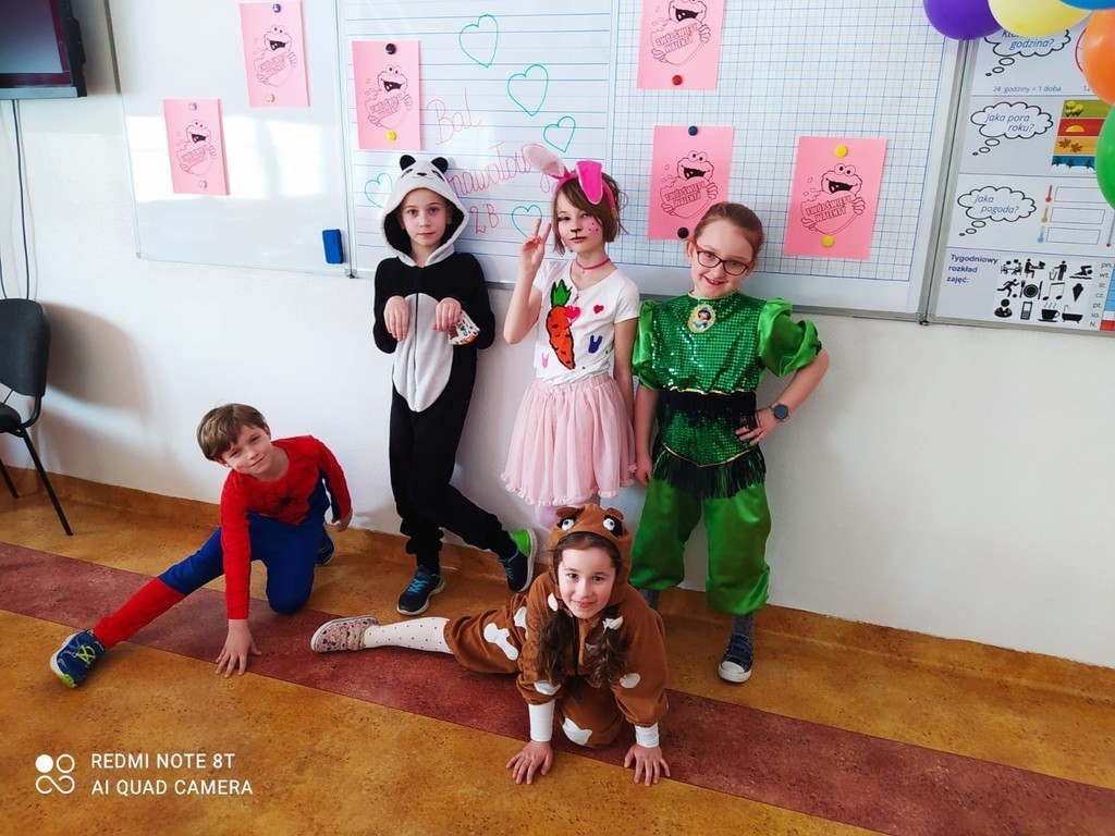 Bal karnawałowy to dzień niezwykły, często wyczekiwany przez wiele tygodni. Jest atrakcją bardzo lubianą przez dzieci, dostarczającą im wielu radości. Tak też było w dniu dzisiejszym w klasie 2b. Uczniowie przebrali się za bohaterów znanych bajek, wróżki, królewny, księżniczki, króliczki, policjantów, Spider-Mana... Nie sposób zliczyć i wymienić tych wszystkich postaci. Wystrój sali wprowadził małych ekologów z kl. 2b w radosny nastrój oraz zachęcił do aktywnej zabawy. Wodzirejem została wychowawczyni pani Ola, która przygotowała dla swoich podopiecznych mnóstwo ciekawych konkurencji. Największe zainteresowanie wzbudził konkurs na najpiękniejszy strój karnawałowy. Tematem przewodnim balu były walentynki.. Przebierańcy świetnie się bawili, uczestnicząc we wspólnych zabawach Na sali podczas tańców robiło się kolorowo, uśmiech nie znikał z twarzy uczniów. Bal umożliwił dzieciom, wychowawczyni i zaproszonym gościom – pani wicedyrektor Agnieszce Jankowskiej i pani Wiesławie Rutkiewicz- spędzenie czasu w miłej atmosferze. Kiedy czas zabawy dobiegł końca, dzieci z nutką żalu opuszczały balową salę. Szkoda, że następny bal dopiero za rok...