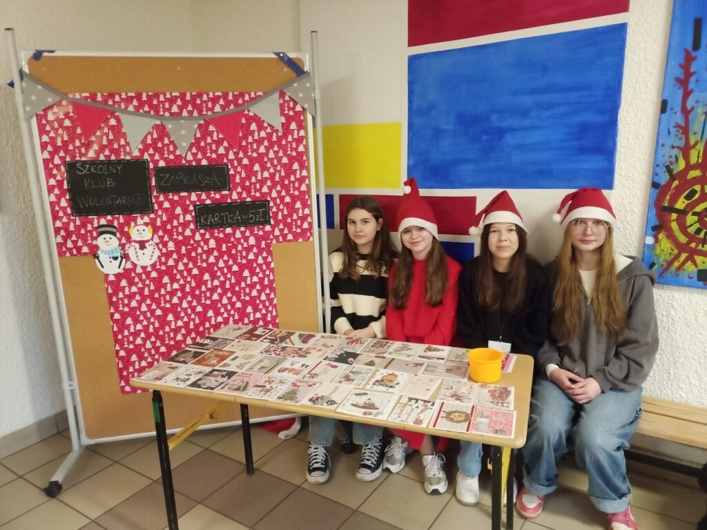 W czwartek 5 grudnia br. wolontariusze Szkolnego Koła Wolontariatu przygotowali kiermasz kartek. Wszystkie zostały wykonane ręcznie, każda z nich była inna i oryginalna. Kartki rozeszły się jak „ciepłe bułeczki” a dochód z ich sprzedaży zostanie przeznaczony na zakup koszulek z logo Szkolnego Klubu Wolontariatu. Bardzo dziękujemy wszystkim, którzy wsparli naszą akcję.