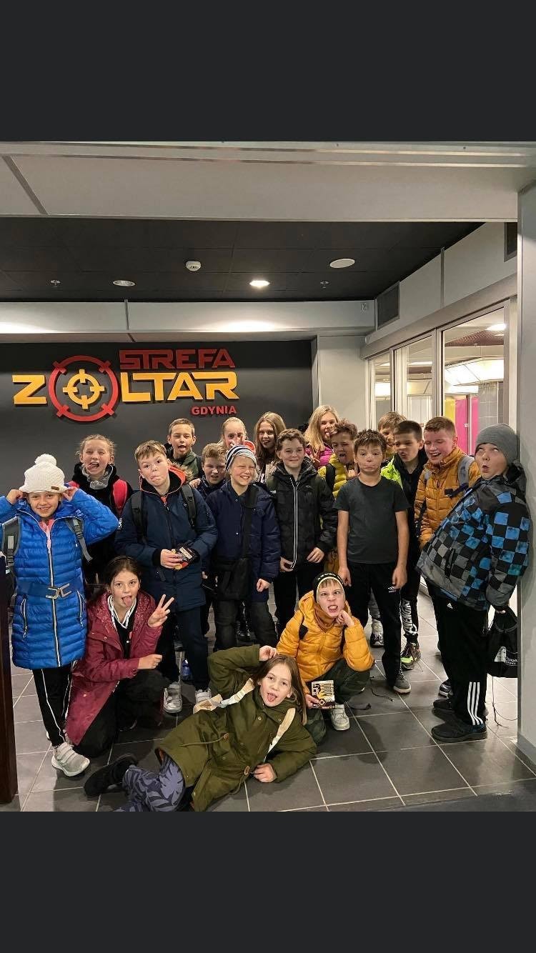 W czwartek ,4 listopada, uczniowie klasy IVc wraz z wychowawcą i panem Jackiem Dziekanowskim udali się do Gdyni, aby uczestniczyć w nietypowej lekcji wychowania fizycznego, która odbyła się w Strefie Zoltar. Gra, zbliżona do tradycyjnego paintballa, przeprowadzana jest na specjalnie przygotowanej arenie o powierzchni blisko 400m2, usianej korytarzami, ,,budynkami" i urządzeniami urozmaicającymi zabawę. Efekty świetlne, dekoracje, a nawet pojazdy tworzą niezwykły klimat, który przeniósł uczniów w strefę klimatu z czasów ,,zimnej wojny"i pozwolił wszystkim zawodnikom poczuć się jak w grze komputerowej.