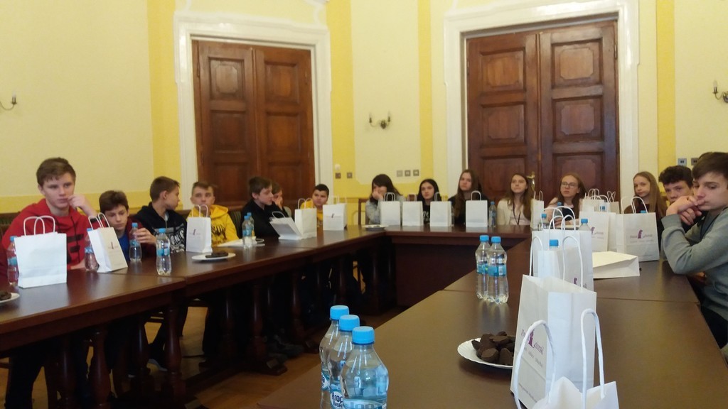 Starostwo Powiatowe w Lęborku to kolejna instytucja , która w ramach programu ,,Otwarta firma" przyjęła naszych uczniów. 22.11. ósmoklasiści z VIIIa wraz z wychowawcą mieli okazję odwiedzić niezwykle gościnną siedzibę starostwa w Lęborku. Uczniów powitali : pani Starosta Lęborski Alicja Zajączkowska, a także pan Sekretarz Powiatu Krzysztof Król. Młodzież zgromadzona w sali obrad Rady Powiatu Lęborskiego miała okazję obejrzeć ciekawą prezentację na temat historii 103- letniego budynku starostwa, a prelekcję prowadziła pani Iwona Juchniewicz z Referatu Rozwoju i Promocji. W bardzo przystępny sposób przybliżyła uczniom specyfikę pracy w starostwie, a także sporo czasu poświęciła na omówienie spraw, które można załatwić w tym urzędzie. Ważną kwestią w czasie spotkania było także poinformowanie uczniów o różnicach między kompetencjami władz gminnych a władz powiatowych. Następnie pani Juchniewicz zaprosiła młodzież do gabinetu Wicestarosty Lęborskiego - pana Edmunda Głombiewskiego , który przyjął wszystkich bardzo serdecznie i krótko opowiedział o swojej pracy. Na koniec uczniowie zostali obdarowani drobnymi upominkami.