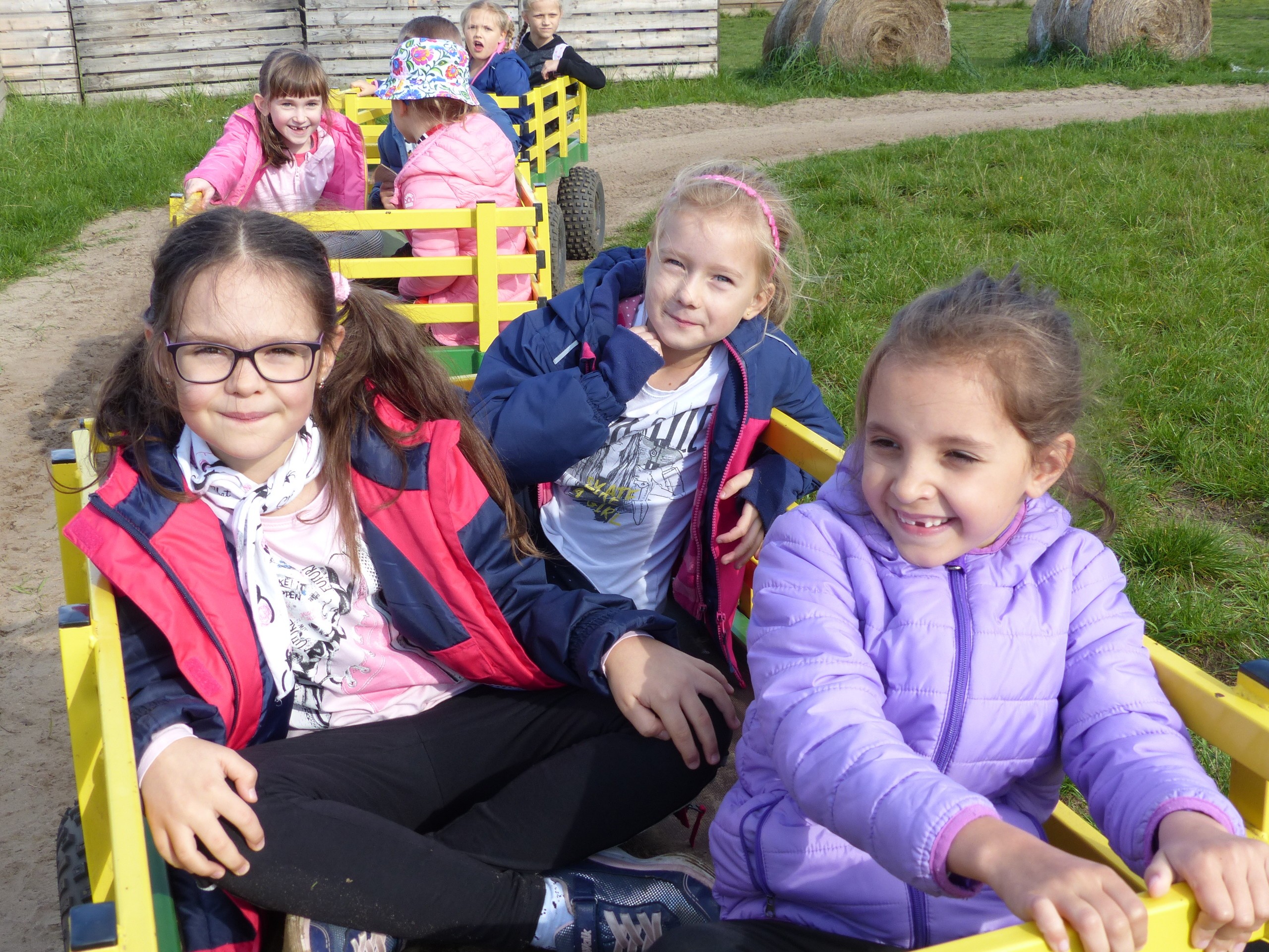 Wielką atrakcja była jazda w wagonikach ciągniętych przez prawdziwy traktor.