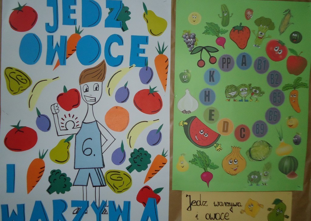 W ramach lekcji biologii i działań prozdrowotnych uczniowie klasy I d wykonali plakaty promujące jedzenie warzyw i owoców. Uczniowie pogłębili wiedzę o zdrowym odżywianiu a szczególnie o roli witamin w naszym organizmie. Nasze ciało będzie prawidłowo funkcjonowało tylko wtedy, gdy będziemy dostarczać organizmowi wszystkich witamin i substancji mineralnych. Owoce i warzywa są doskonałym źródłem zdrowia. Jako produkty niskokaloryczne nie tylko pomagają nam utrzymać szczupłą sylwetkę, ale też chronią nas przed chorobami.