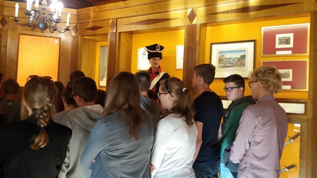 Zwiedziliśmy dwie wystawy, pierwsza zatytułowana: „Józef Wybicki i jego epoka”, która ukazuje życie i działalność Józefa Wybickiego oraz okoliczności powstania „Mazurka Dąbrowskiego”. Prezentuje też zabytkowe wnętrza pomorskiego dworu szlacheckiego z XVIII i pierwszej polowy XIX wieku. Druga wystawa przedstawia rolę „Mazurka Dąbrowskiego” w podtrzymywaniu świadomości narodowej Polaków w okresie zaborów i w ich walkach o uzyskanie utraconej państwowości, począwszy od XIX wieku aż po okres II wojny światowej. Ta niezwykle ciekawa lekcja patriotyczna bardzo podobała się uczniom.