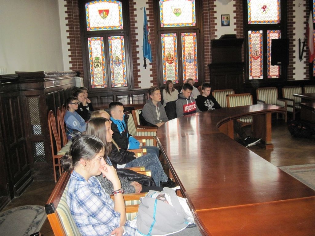 Na koniec młodzież miała okazję poznać historię lęborskiego ratusza , a także zwiedzić budynek – gimnazjaliści mogli wejść nawet do urzędowego skarbca.