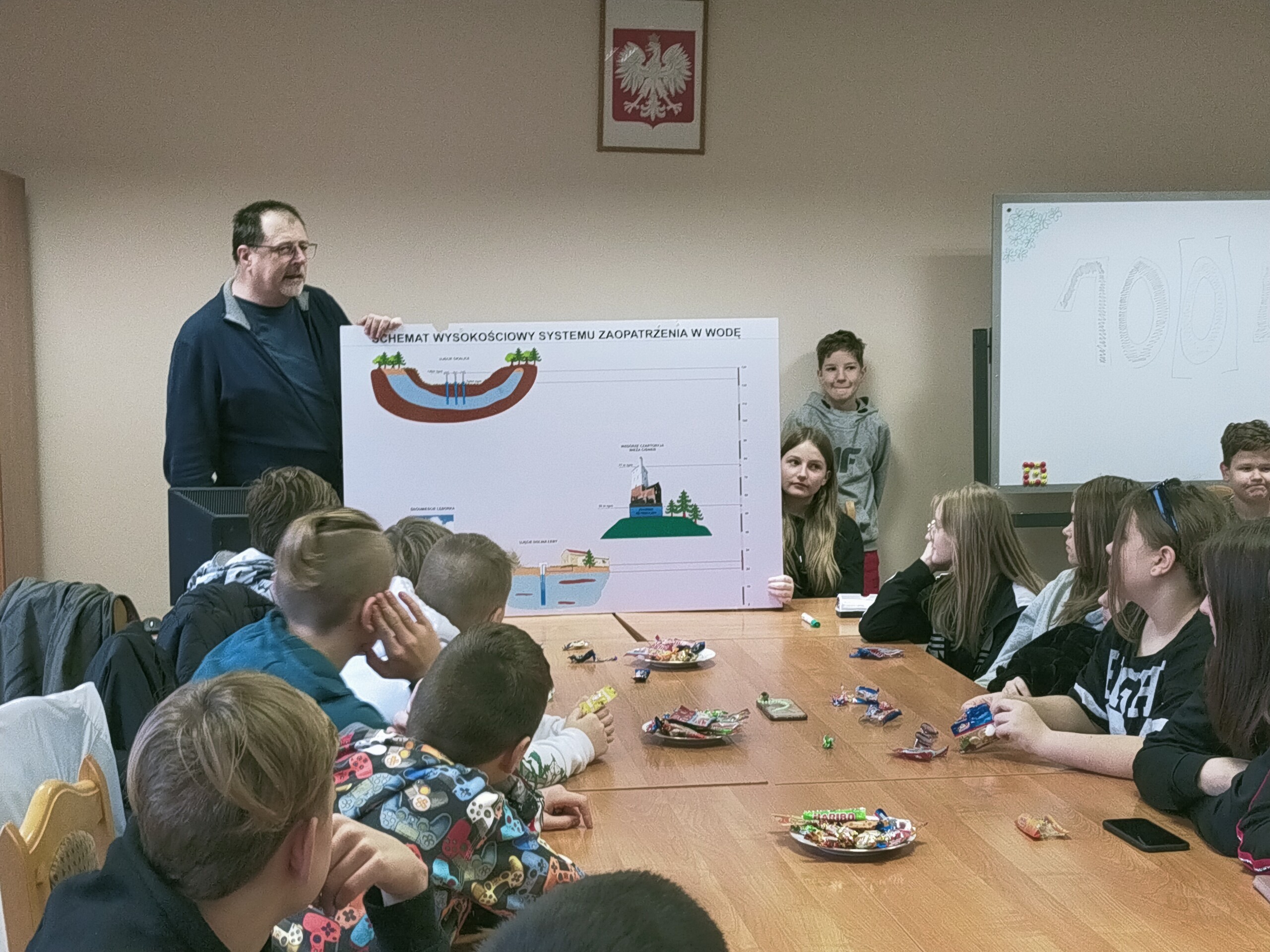 Dnia 16 listopada uczniowie klas 6a i 6b pod opieką wychowawców odwiedzili siedzibę Miejskiego Przedsiębiorstwa Wodociągów i Kanalizacji w Lęborku w ramach programu Otwarta Firma. Na miejscu przywitał nas dyrektor -pan Piotr Boniaszczuk. Opowiedział nam o specyfice pracy w zakładzie, a także o tym, jak żmudny i skomplikowany jest proces uzdatniania wody oraz oczyszczania ścieków. Nie zabrakło także ciekawostek dotyczących tego, że statystycznie przeciętny obywatel najwięcej wody zużywa rano i wieczorem. Uczniowie dowiedzieli się również, że woda płynąca w lęborskich kranach należy do najzdrowszych w Europie i jest zdatna do picia.