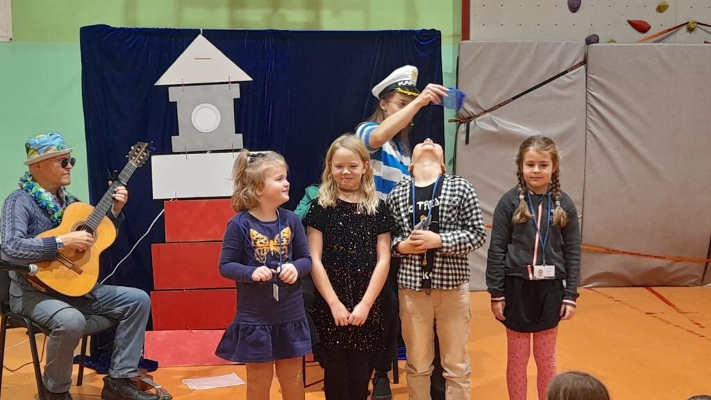 30 listopada uczniowie klas I-III uczestniczyli w drugim muzycznym spotkaniu z grupą Art2You. Tym razem zaprezentowane zostały uczniom kolejne instrumenty – ukulele, gitara klasyczna, akordeon oraz ustna harmonijka. Uczniowie wyruszyli w muzyczną podróż pod hasłem – „Latarnia na samotnej wyspie”. Dzieci mogły się przekonać o tym, jak bardzo odpowiedzialna jest praca latarnika i jak czasem trudno odnaleźć szczęście….
