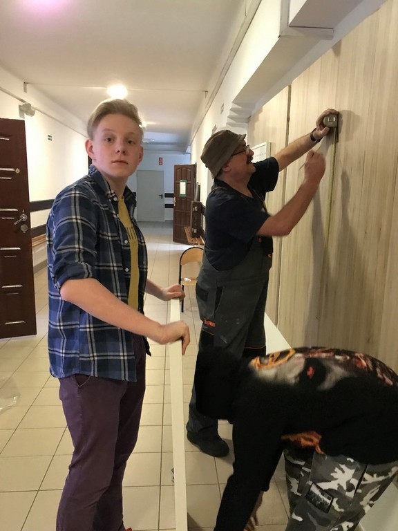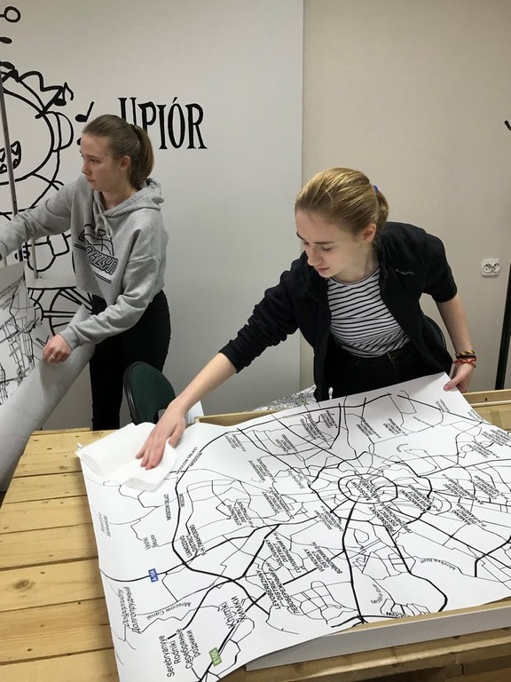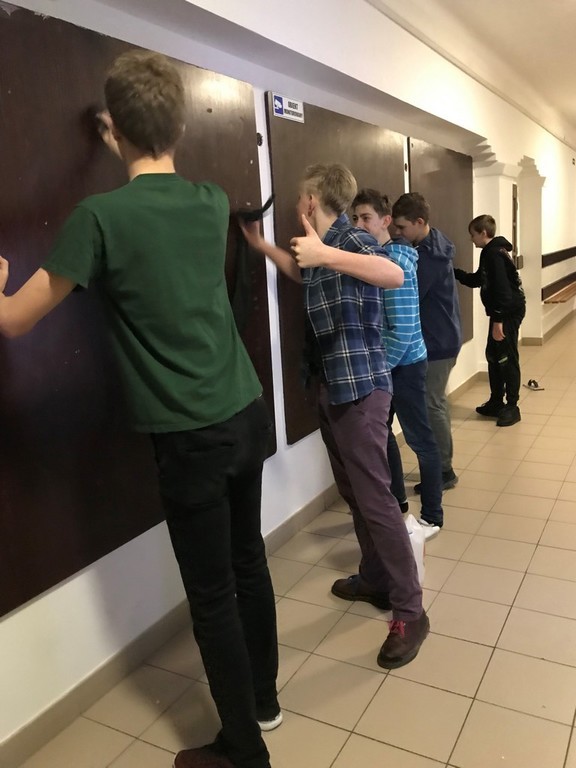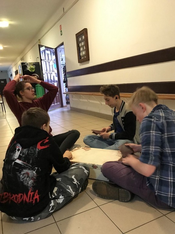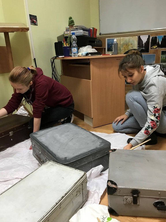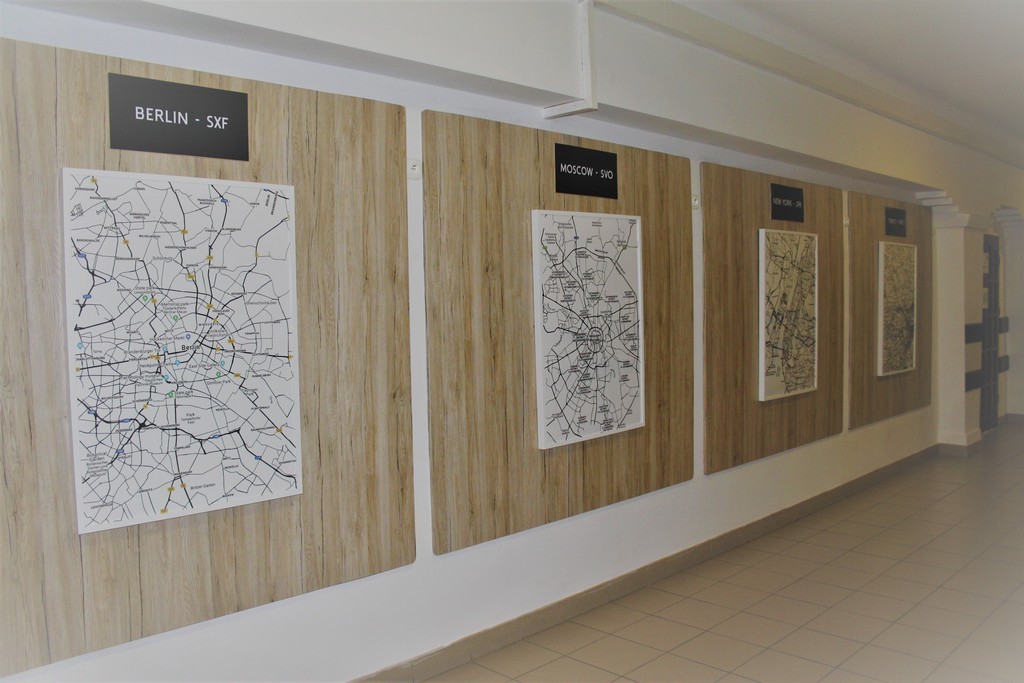 W pierwszym tygodniu ferii zimowych grupa uczniów zaangażowanych w realizację szkolnego projektu ART+STUDIO zajęła się wykonaniem kolejnego pomieszczenia szkolnego - tym razem przyszedł czas na górny korytarz. W związku z tym, że na piętrze tym znajdują się klasopracownie językowe, przewodnim motywem zaprojektowanego wnętrza stało się „lotnisko”. To na lotnisku bowiem spotykają się ludzie z różnych części świata, mówiący różnymi językami.