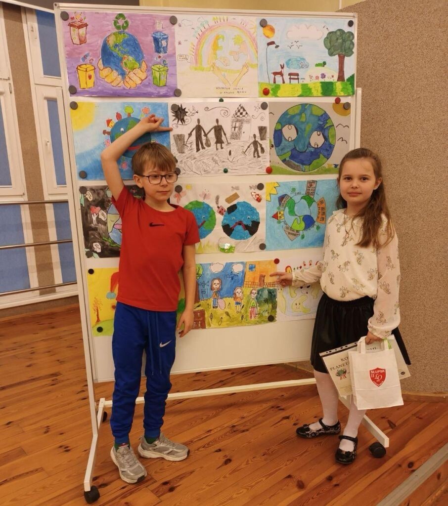 Wyróżnienia otrzymali uczestnicy koła plastycznego - „Mamo, Tato! Zobacz, co dziś zmalowałem": Lena Noetzel i Maksymilian Wojciechowski z klasy Ic.