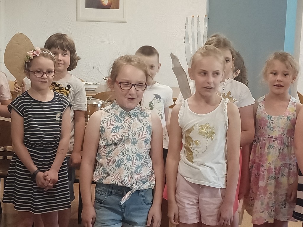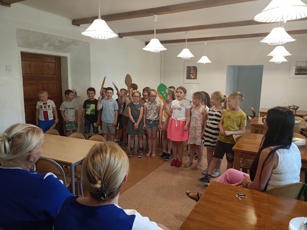 Dzieci uczęszczające do świetlicy podziękowały paniom kucharkom i pani intendentce z pyszne obiady w mijającym roku szkolnym. W podzięce nasi „mali konsumenci” dedykowali paniom wiersz, piosenkę i rymowankę. Dzieci obiecały także, że wszystkie przygotowane dania w przyszłym roku szkolnym będą zjadały do końca. Mniam!