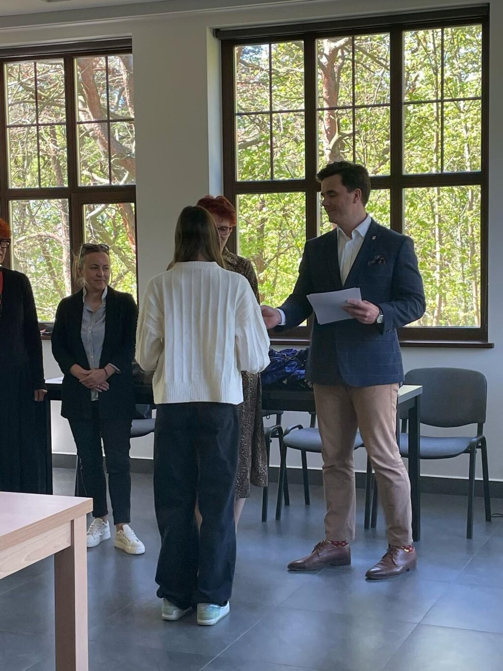 W poniedziałek, 28 maja br. , w lęborskiej Wieży Ciśnień odbył się Konkurs wiedzy o zamkach gotyckich. Nasza reprezentacja w składzie: Amelia Bartko z kasy VIIa, Aleksandra Rusin z klasy VIIb oraz Marcel Rzoska z VIa zaprezentowali bardzo wysoki poziom w konkursie. Marcel jednym punktem przegrał ze zwycięzcami konkursu. Cieszymy się z wyników i gratulujemy.