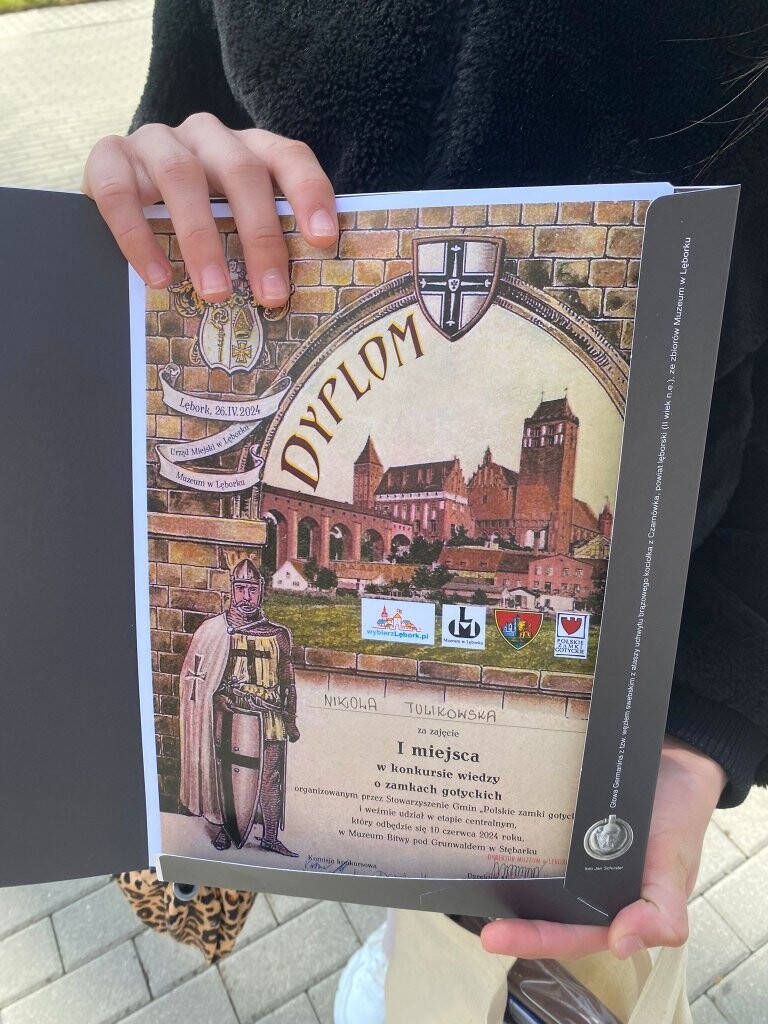 26 kwietnia w lęborskiej Wieży Ciśnień odbył się międzyszkolny etap konkursu wiedzy o zamkach gotyckich. Naszą trzyosobową drużynę utworzyli: Marcel Rzoska, Nikodem Remiasz z klasy Va i Nikola Tulikowska z klasy Vc. Konkurs obfituje w szczegóły dotyczące budowy zamków i pobytu Krzyżaków na obszarze Prus. Miło nam zakomunikować, że Nikola Tulikowska (w dniu swoich urodzin!) wygrała te międzyszkolne zmagania i będzie nas reprezentować w kolejnym międzygminnym etapie. Finał konkursu w czerwcu pod Grunwaldem. Warto wspomnieć, że świetnie zaprezentowali się też chłopcy. Dwa punkty przesądziły o wejściu do ścisłego finału...