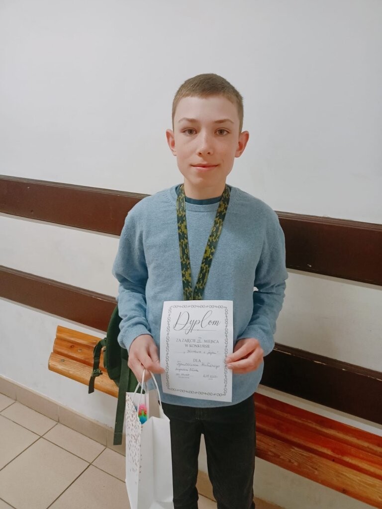 III miejsce ex aequo: Witold Kałuzny z klasy IVb, Tymoteusz Kałużny z klasy VIa