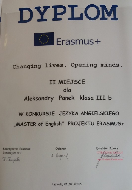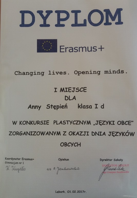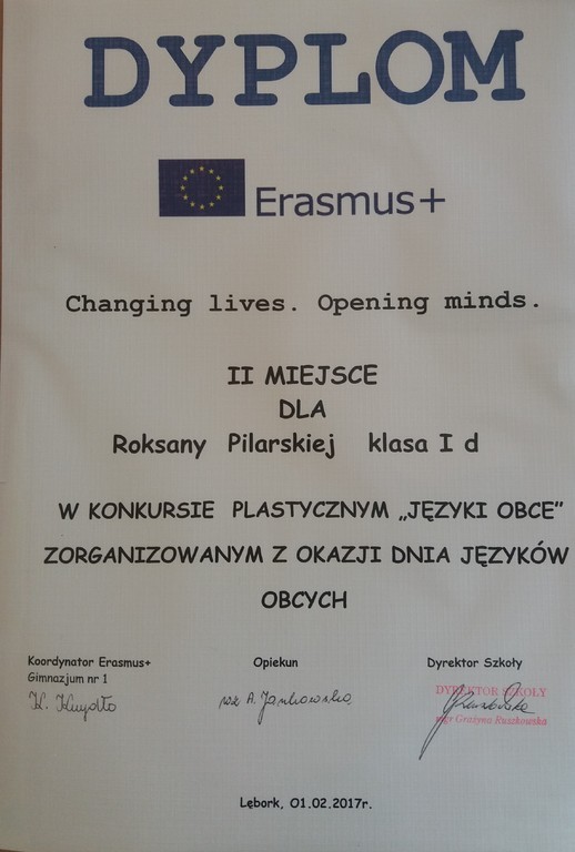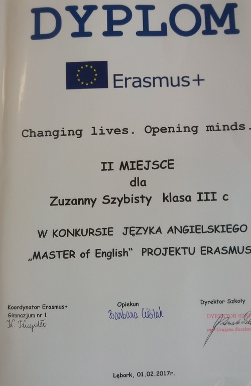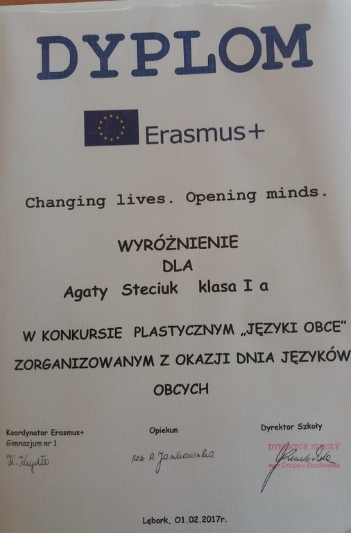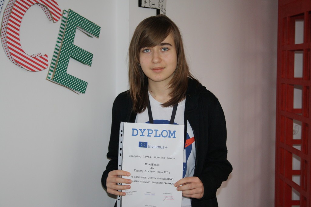 Kolejną laureatką jest Aleksandra Becker z klasy 3b. Pomysł Oli Becker na nazwę nowej sali przy bibliotece zwyciężył w konkursie Erasmus+.
