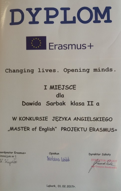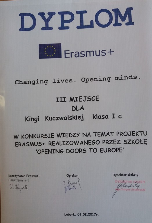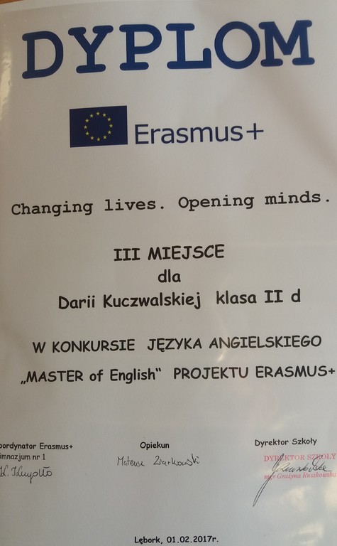 | Konkurs języka angielskiego | Konkurs plastyczny | Konkurs wiedzy o Erasmus+ |