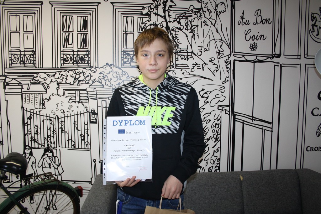 Chętni uczniowie uczestniczyli w konkursie wiedzy na temat naszego projektu Erasmus+ .