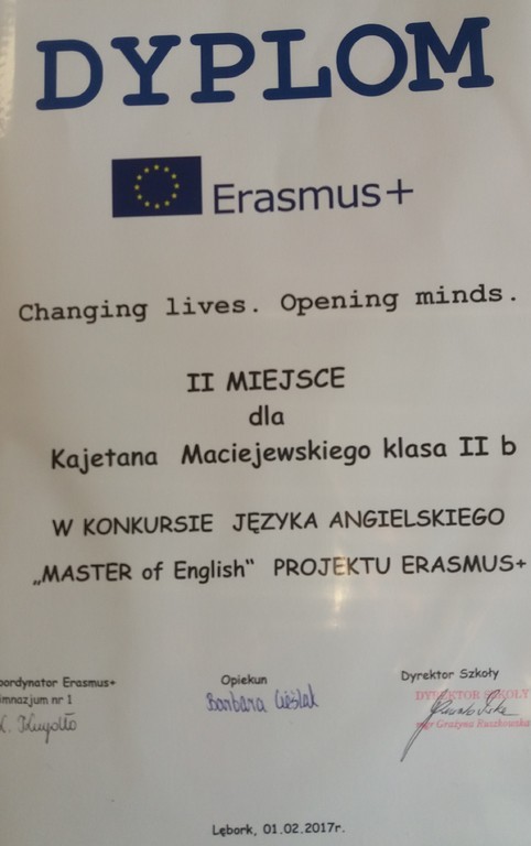Konkurs języka angielskiego dla uczniów klas drugich i trzecich: „Master of English” .