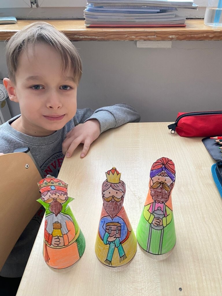 Przed świętem Objawienia Pańskiego uczniowie klas najmłodszych wykonali prace plastyczne dotyczące Mędrców ze Wschodu: Kacpra, Melchiora i Baltazara. Mędrcy ofiarowali Dziecięciu dary: złoto, kadzidło i mirrę. Zajęcia plastyczne rozbudzają talenty, przybliżają wydarzenia biblijne.