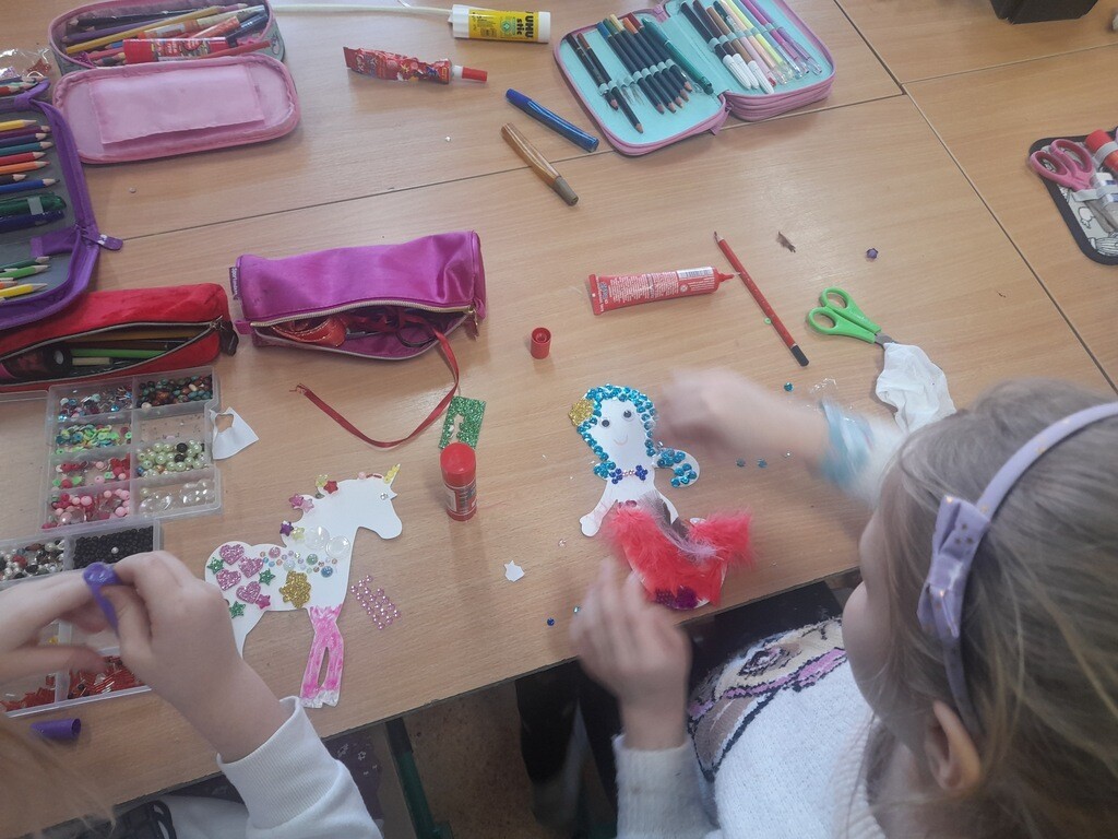 W pierwszym tygodniu ferii w naszej szkole odbyły się zajęcia artystyczne. Chętni uczniowie kreatywnie i w miłej, przyjaznej atmosferze spędzili czas wolny od lekcji. Podczas zajęć doskonalili swój warsztat plastyczny oraz rozwijali wyobraźnię i twórcze myślenie. Dzieci różnymi technikami wykonały wiele ciekawych prac.