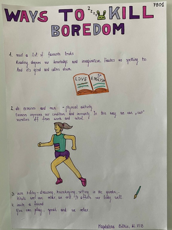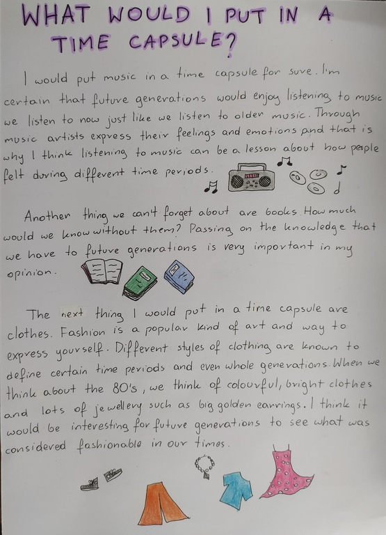 Uczniowie klas siódmych i ósmych pod kierunkiem p. Izabeli Lipowskiej tworzyli projekty, dzieląc się swoimi pomysłami i odkrytymi pasjami. Niektórzy polecali książki i filmy, które uznali za warte poznania lub szykowali kapsułę czasu dla przyszłych pokoleń.