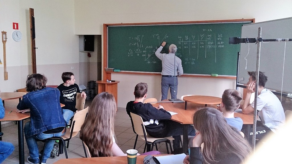 Pierwsza część zajęć poświęcona była przygotowaniu teoretycznemu do doświadczalnego wyznaczenia przyspieszenia grawitacyjnego za pomocą wahadła matematycznego.