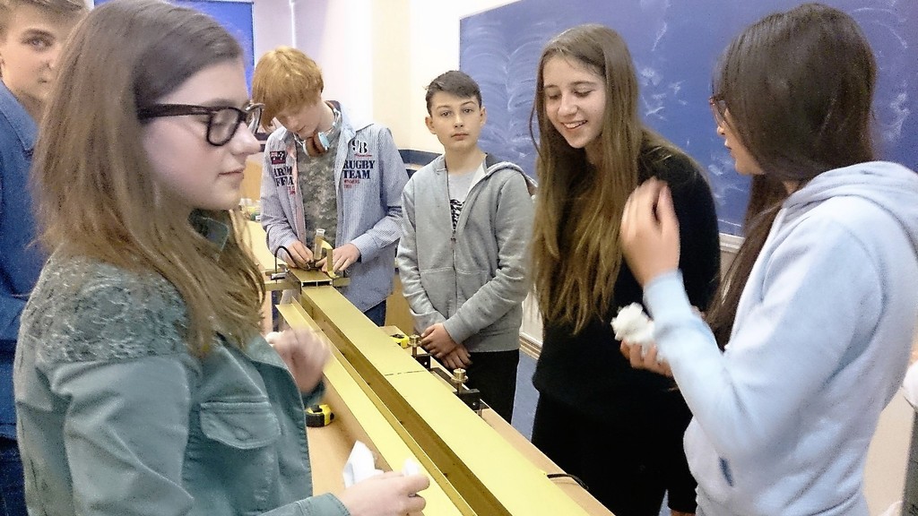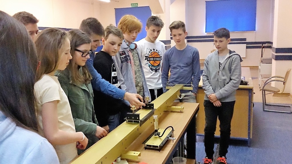 W drugiej, za pomocą toru z poduszką powietrzną, uczniowie badali ruch jednostajny, jednostajnie zmienny oraz zderzenia niesprężyste i sprężyste.