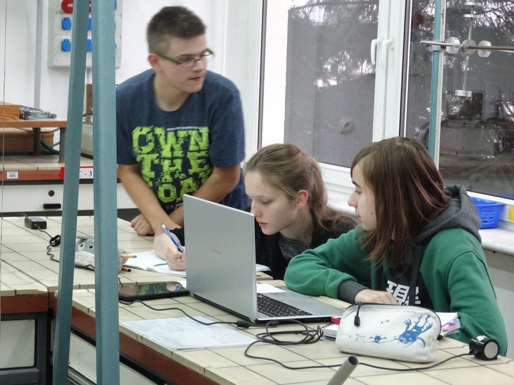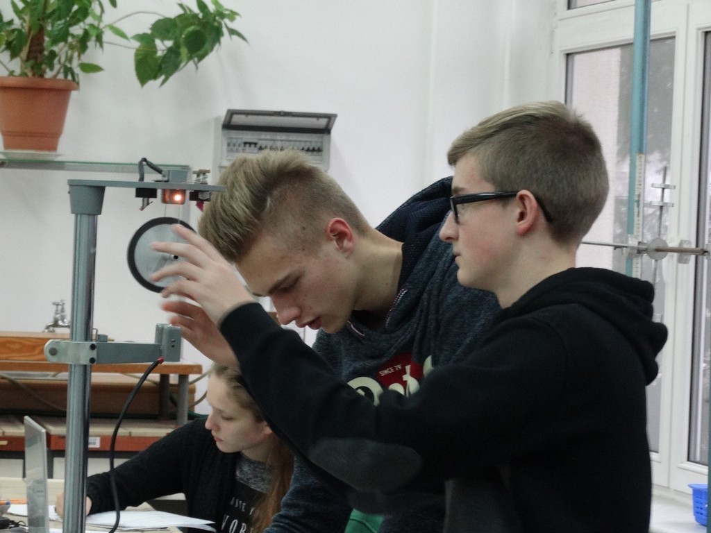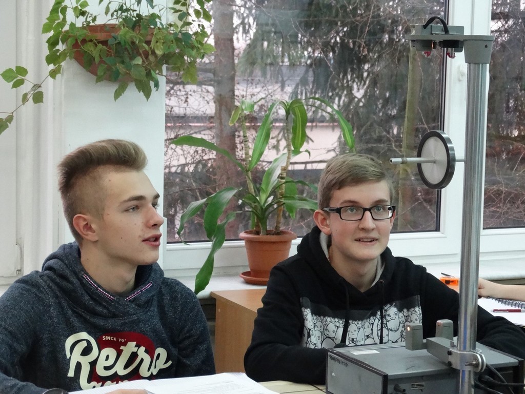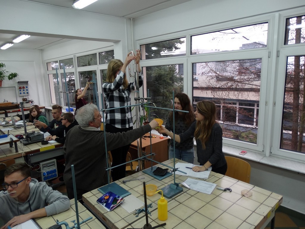 W pierwszym bloku trzecioklasiści przeprowadzali doświadczenia w I Pracowni Fizycznej. Pod kierunkiem mgr inż. Władysława Strugały wyznaczali wartość przyspieszenia grawitacyjnego za pomocą wahadła Maxwella i spadkownicy Atwooda, lepkość cieczy oraz badali zjawisko rezonansu akustycznego.