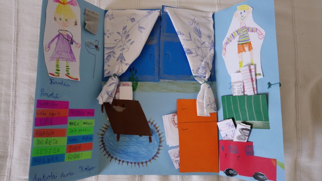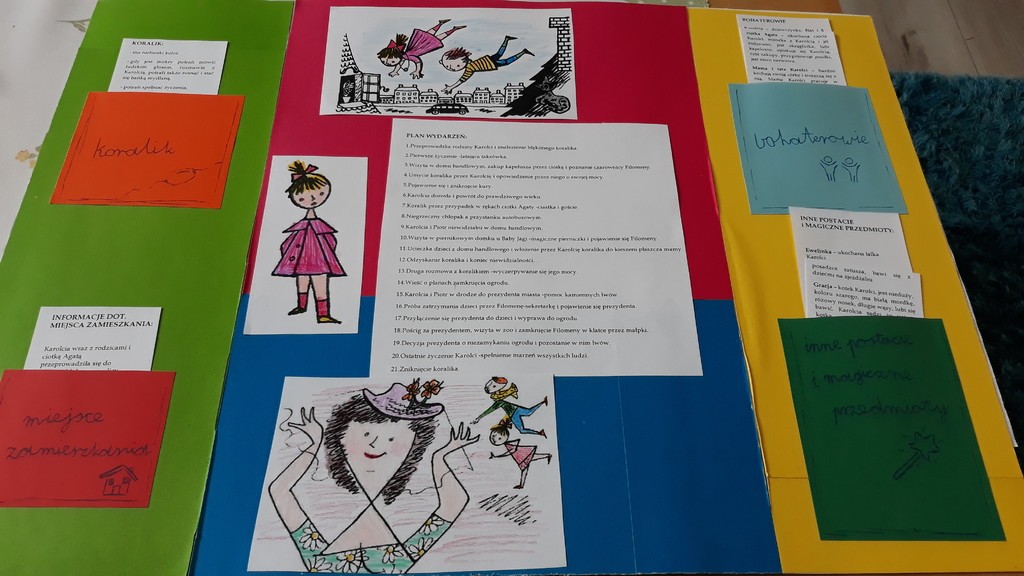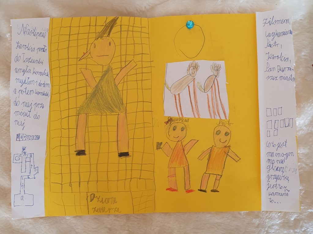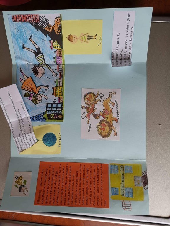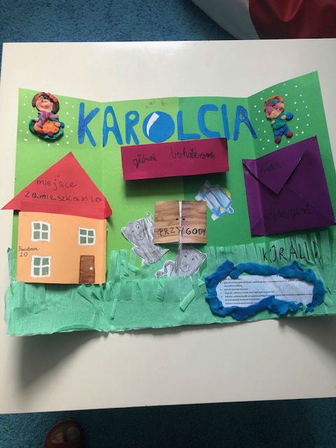 Takich pomysłów, jak również zaangażowania nie brakuje na pewno uczniom klasy 2a, którzy pod kierunkiem swojego wychowawcy mieli za zadanie wykonanie lapbooka dotyczącego omawianej podczas konsultacji online lektury ,,Karolcia" autorstwa Marii Kruger. Prace drugoklasistów naprawdę robią wrażenie- są starannie wykonane, bardzo oryginalne, a przede wszystkim w sposób przejrzysty i obrazowy ukazują najważniejsze treści i przesłanie omawianej lektury. Widać tu ogromne zaangażowanie, chęci i kreatywność dzieciaczków. Każda z tych prac zasługuje na ocenę celującą! Jak widać, w domu, podczas nauki zdalnej, powstają takie oto cuda: