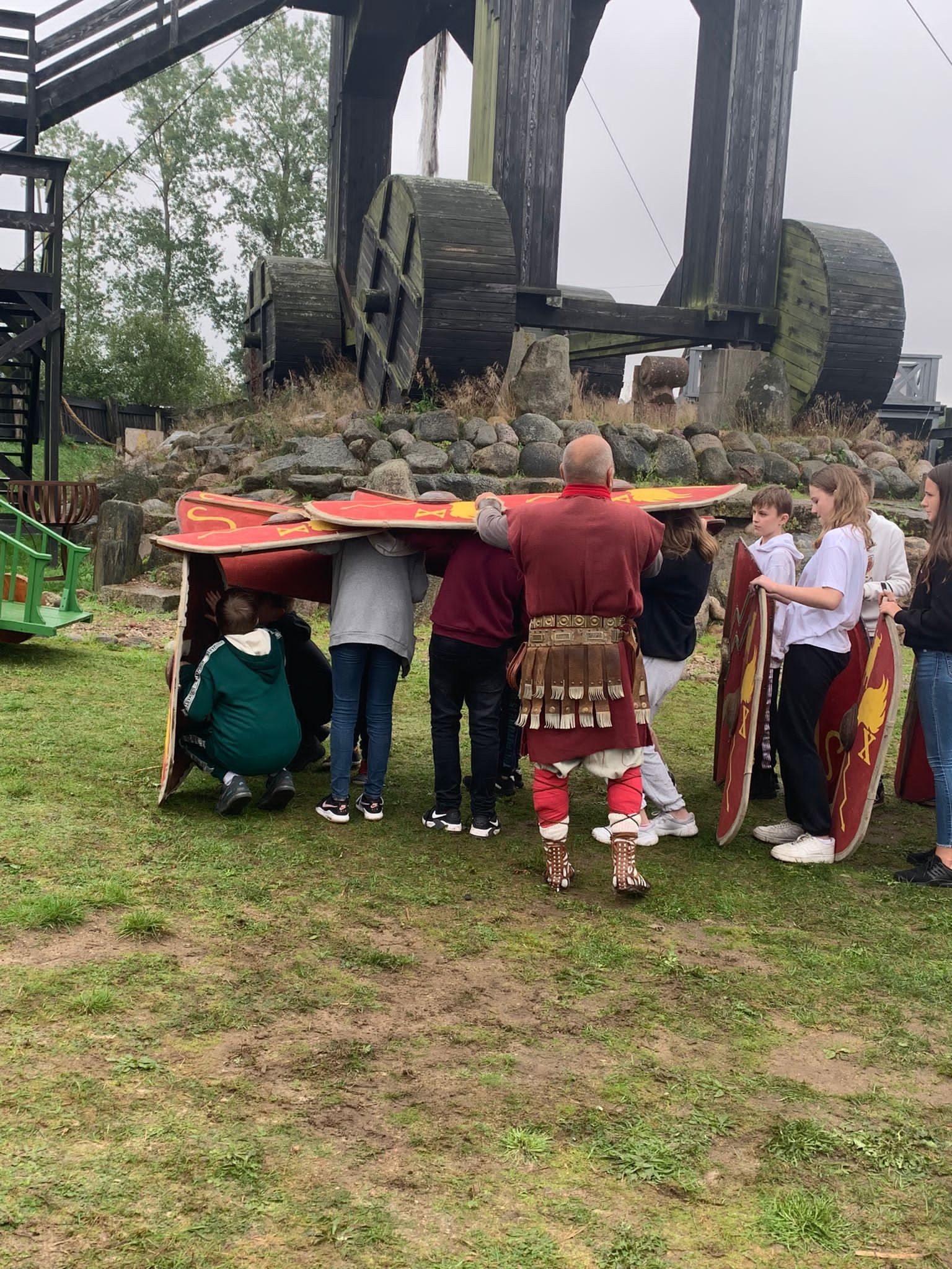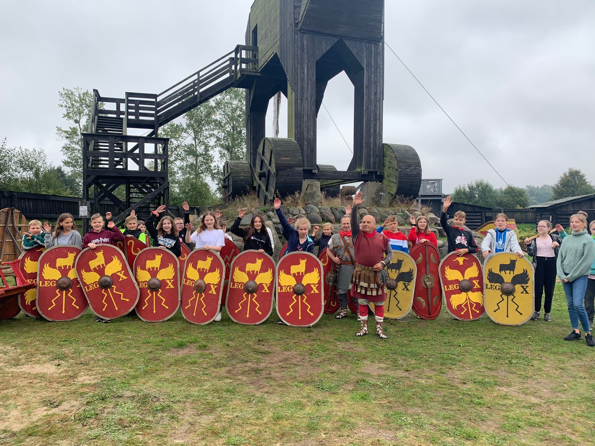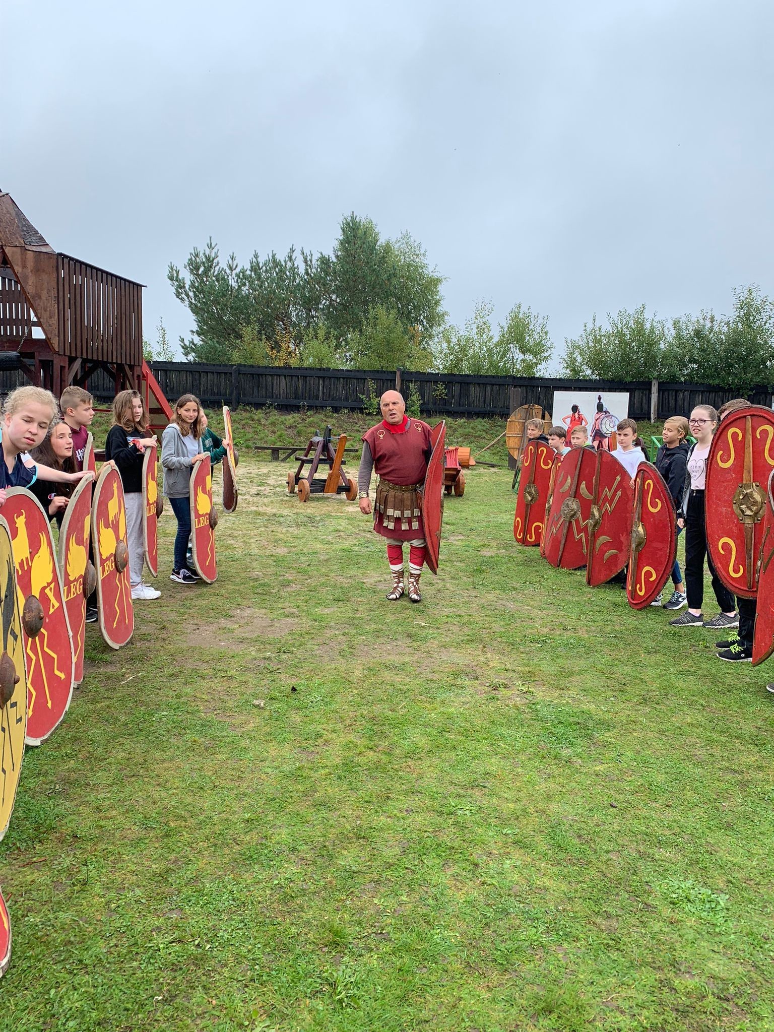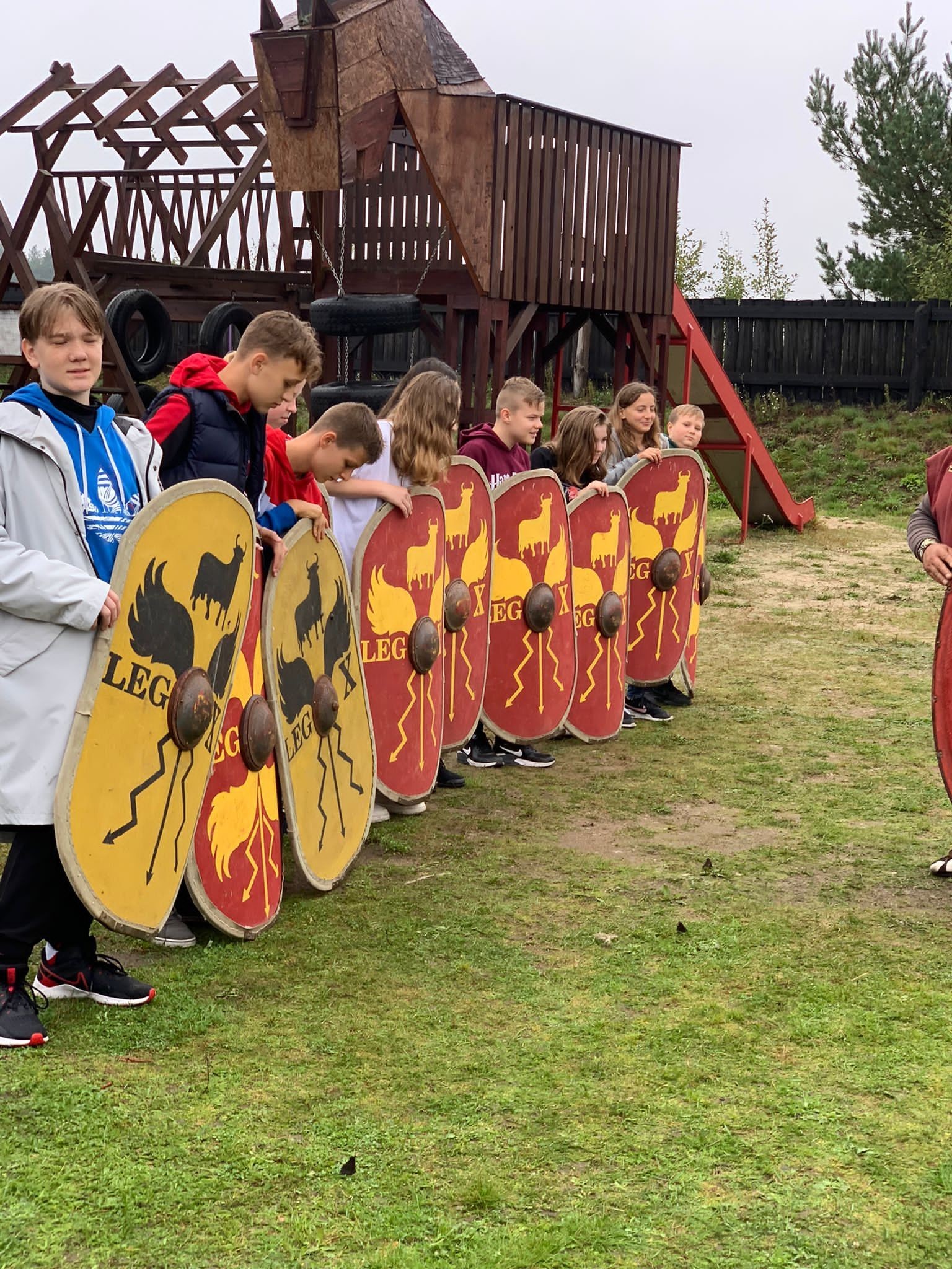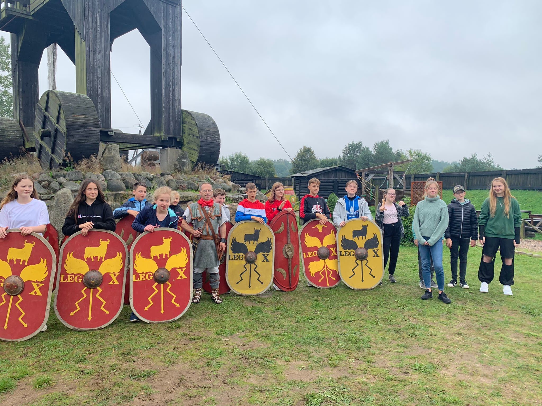 W ubiegły czwartek klasa VII d wraz z wychowawcą wybrała się na spotkanie integracyjne do Oskowa, gdzie pasjonat rzymskich legionów p.Wiesław Formela dzieli się swoją wiedzą na temat starożytności. Gościnne progi faktorii rzymskiej zainteresowały naszych uczniów, którzy mogli pojeździć rzymskim rydwanem czy znaleźć drogę do ukrytej w labiryncie studni. Nad faktorią góruje postać trojańskiego konia, z którego roztacza się piękny widok na okolicę. Wszyscy mogli sprawdzić się także w łucznictwie i zadaniach sprawnościowych. Miłym akcentem było wspólne ognisko i posiłek. Połączenie przyjemnego z pożytecznym bardzo nam się udało i jeszcze tam wrócimy.