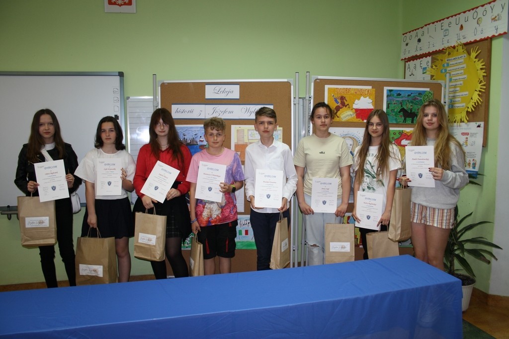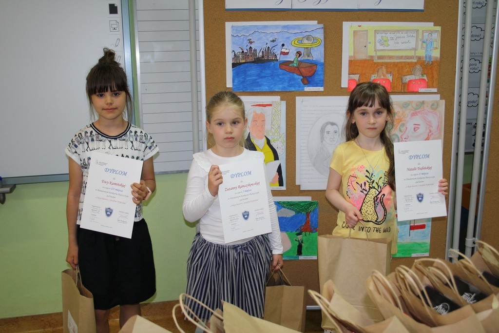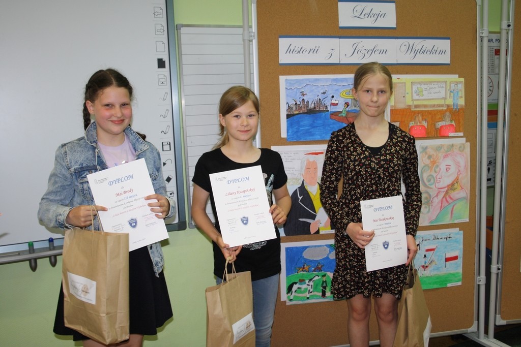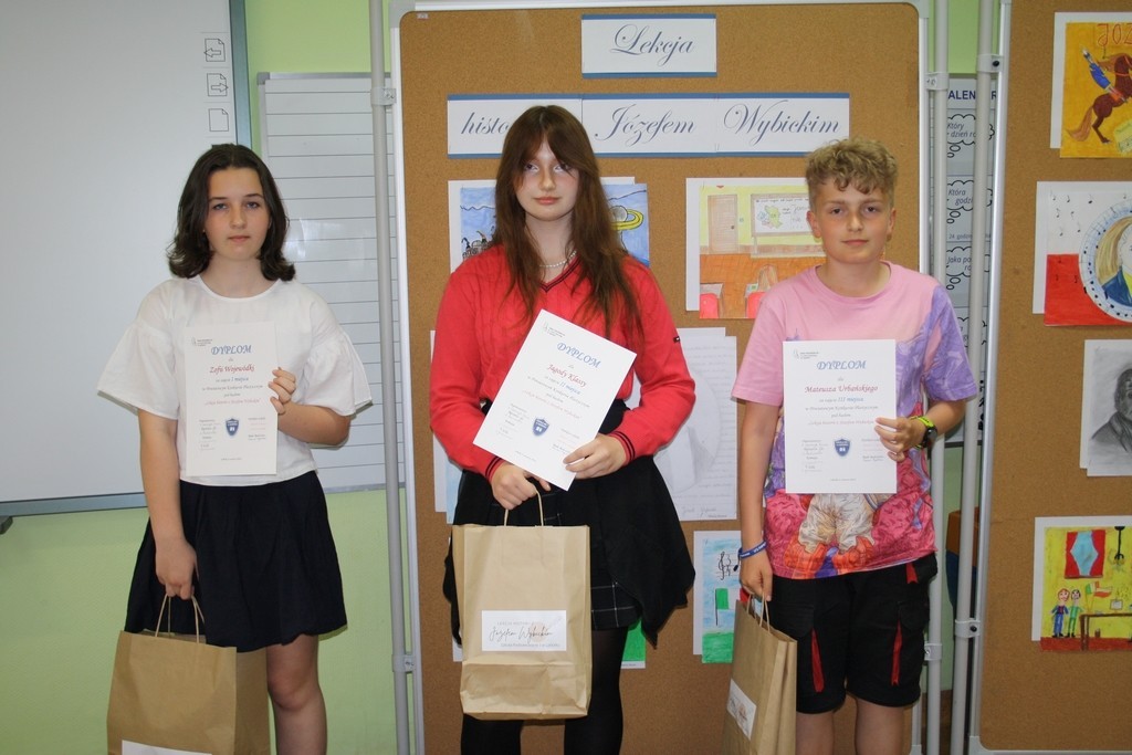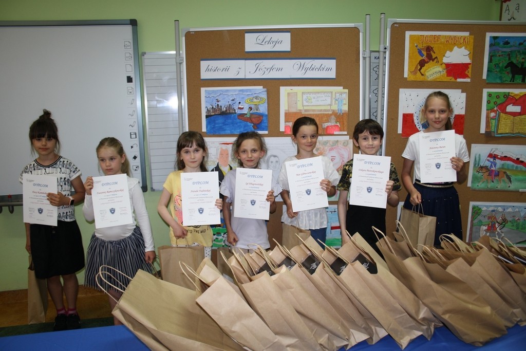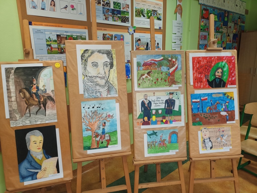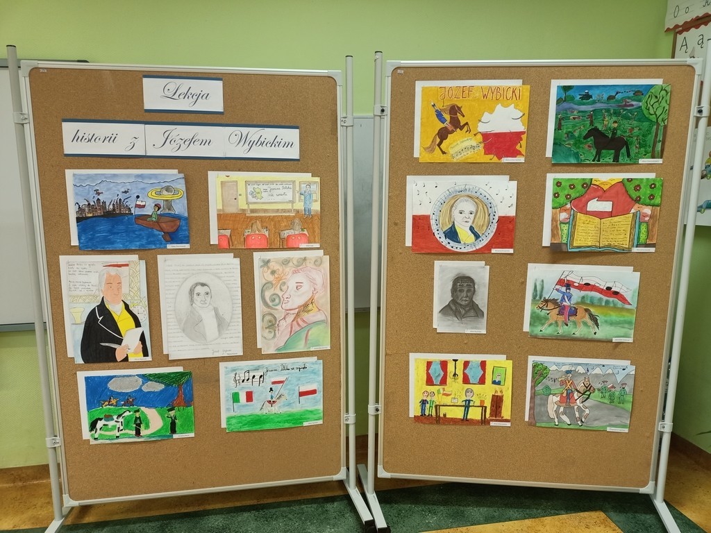 6 czerwca 2022r. rozstrzygnięty został Powiatowy Konkurs Plastyczny pod hasłem: „Lekcja historii z Józefem Wybickim”. Celem organizowanego przez naszą szkołę konkursu było upamiętnienie wydarzeń i bohaterów historycznych a także krzewienie postaw patriotycznych wśród uczniów szkół podstawowych naszego powiatu. Warto przypomnieć, że rok 2022 został ogłoszony rokiem Józefa Wybickiego - w obecnym bowiem roku przypada 200. rocznica śmierci Wybickiego, 275. rocznica urodzin a także 225. rocznica powstania słynnej Pieśni Legionów Polskich we Włoszech. Konkurs plastyczny jest jednym z przedsięwzięć realizowanych przez naszą szkołę w ramach wspomnianego już roku naszego patrona.