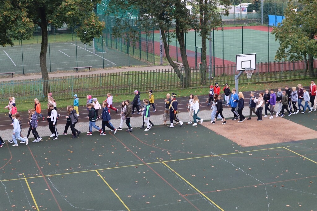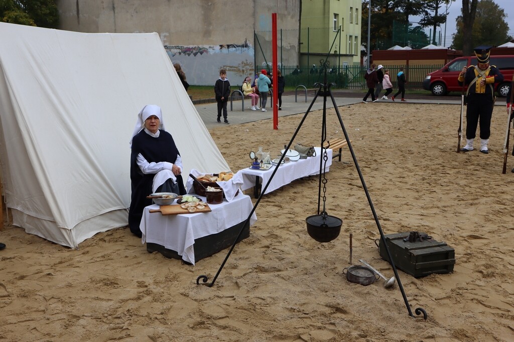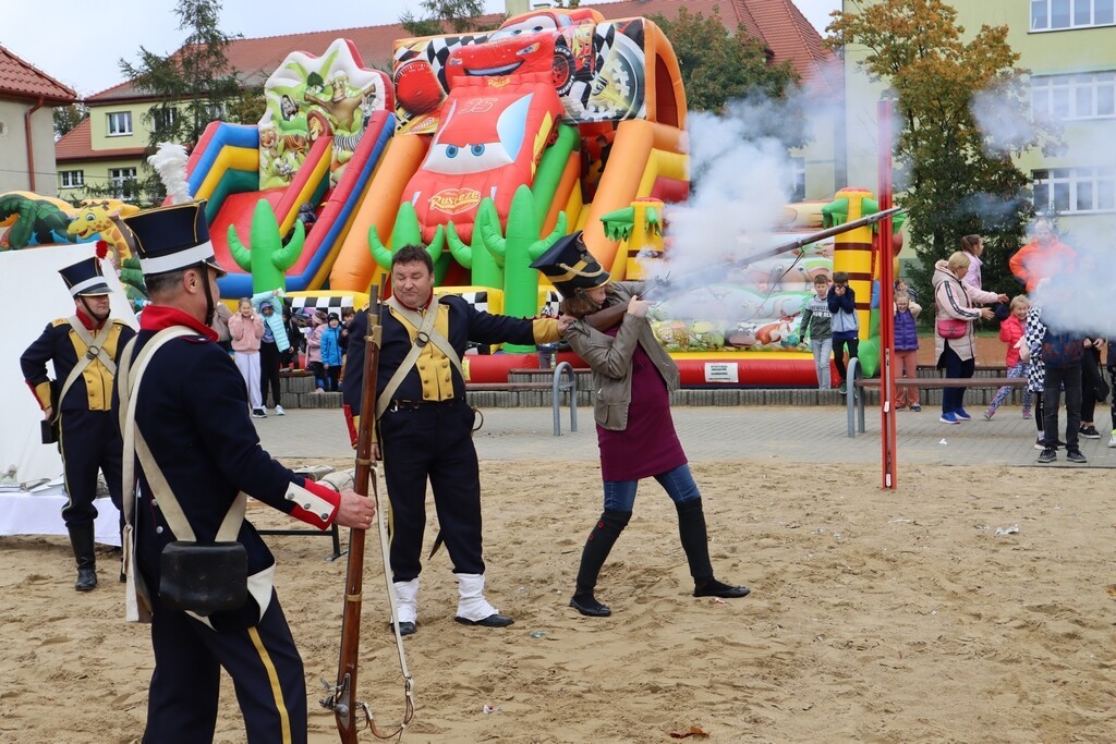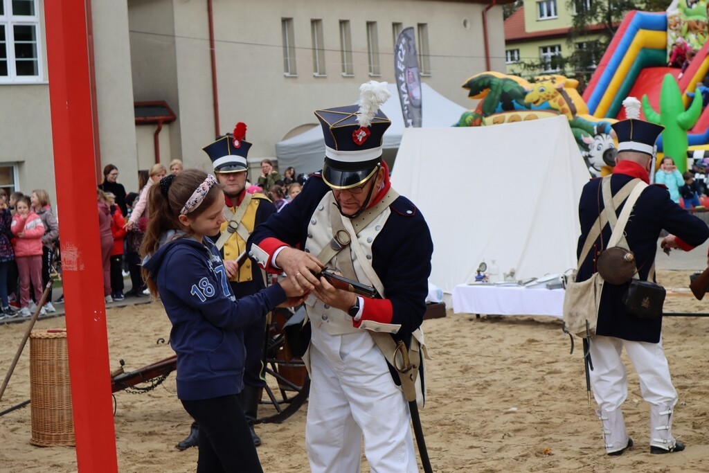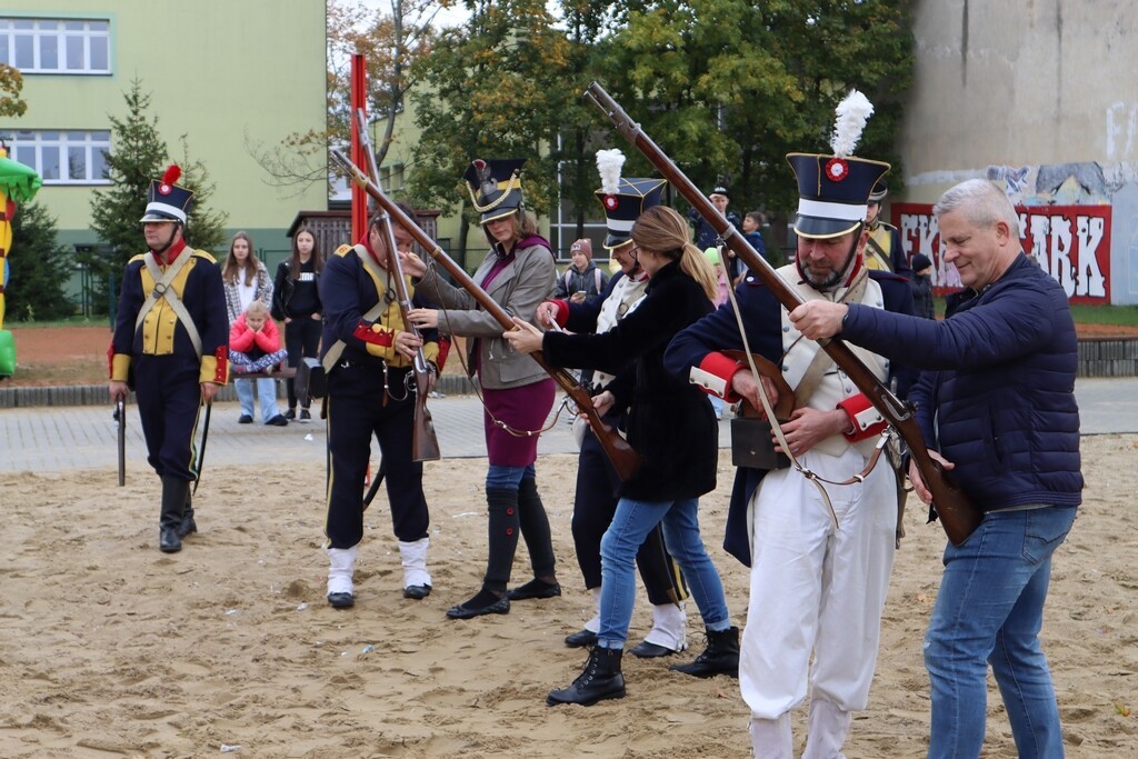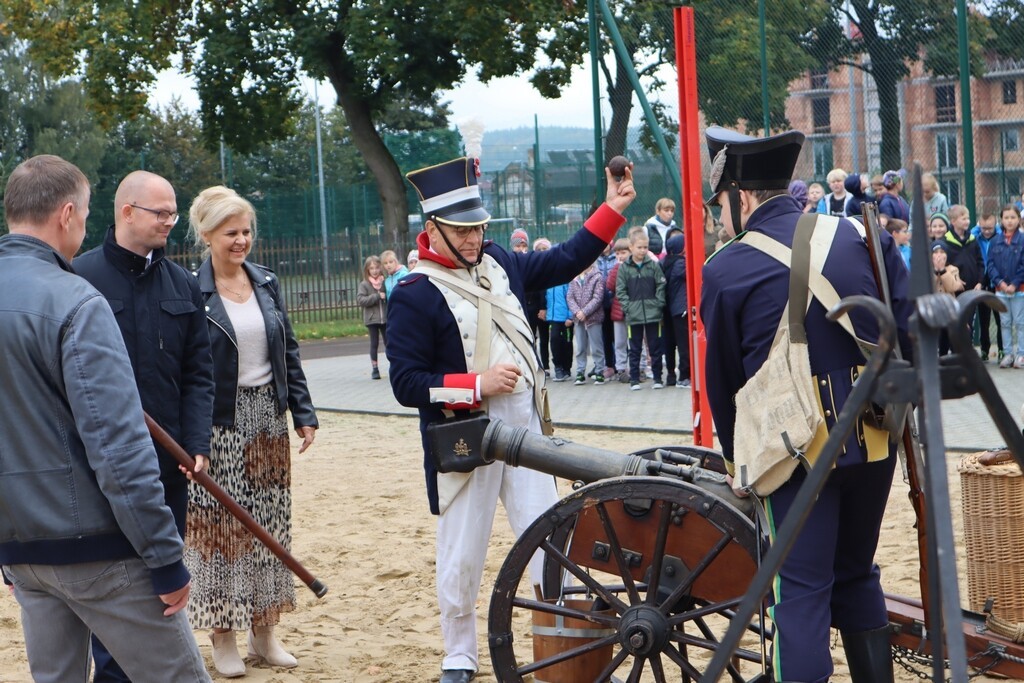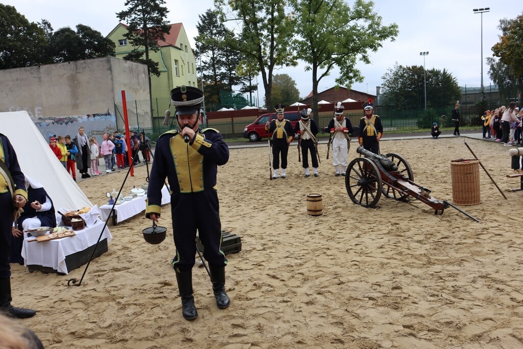 Realia epoki w której żył nasz patron przybliżyła uczniom Grupa Rekonstrukcji Historycznej „Nałęcz” działająca przy Klubie Wojskowym 7. Brygady Obrony Wybrzeża w Trzebiatowie. Zebranym zaprezentowana została musztra, cykl załadowania karabinów – chętni mogli również strzelić z karabinu skałkowego – strzelającego czarnym prochem. Żołnierze zaprezentowali repliki mundurów z epoki. Na boisku szkolnym pojawił się również namiot napoleoński oraz stanowisko do przygotowania posiłku nad ogniskiem. Można było spróbować chleba ze smalcem. Była to naprawdę ciekawa lekcja historii.
