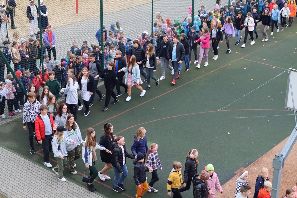 Wydarzenie rozpoczęło się od przemówienia dyrektor szkoły p. Grażyny Ruszkowskiej oraz wystrzału z armaty czarnoprochowej. Następnie uczniowie klas IV-VIII odtańczyli poloneza – narodowy taniec rozpoczynający ważne uroczystości. W naszym niecodziennym święcie uczestniczyli również p. Jerzy Pernal - zastępca burmistrza Lęborka, p. Jarosław Litwin - przewodniczący Rady Miejskiej oraz wiceprzewodniczący p. Krzysztof Siwka.