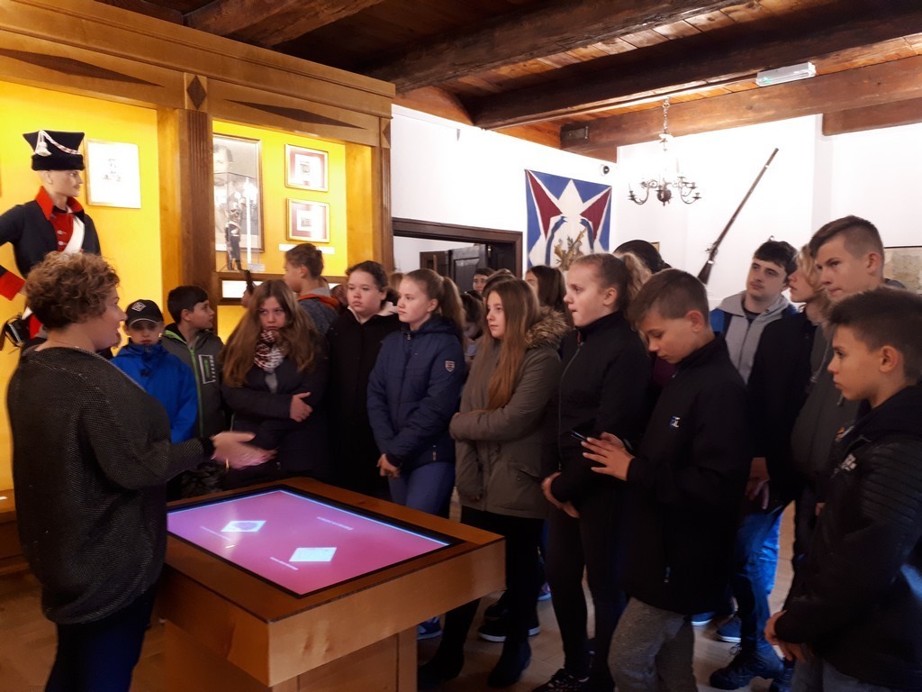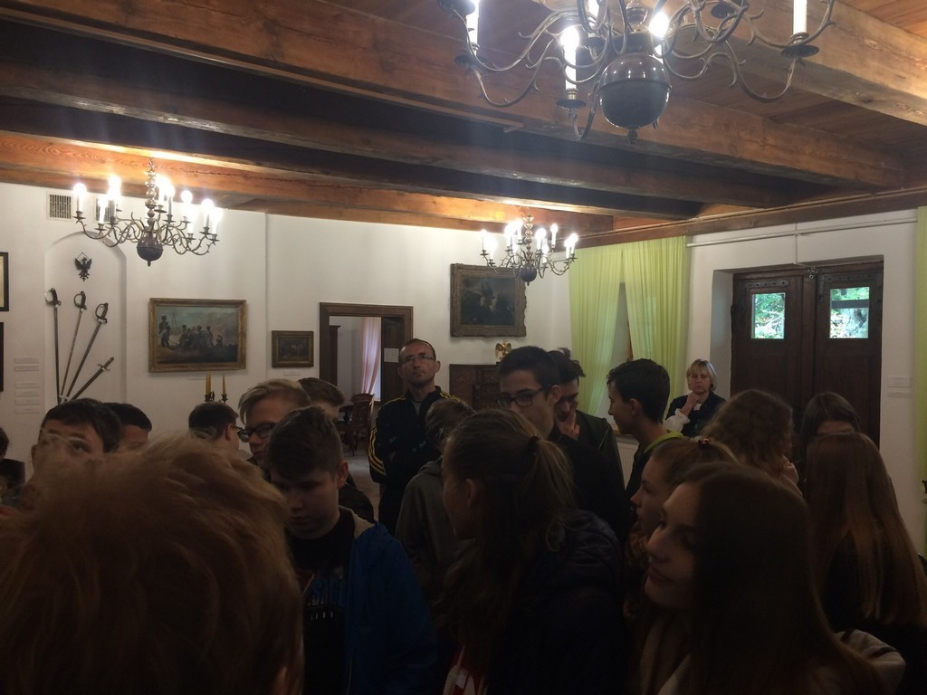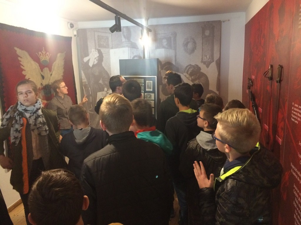 Zwiedziliśmy dwie wystawy. Pierwsza - zatytułowana: „Józef Wybicki i jego epoka” ukazuje życie i działalność Józefa Wybickiego oraz okoliczności powstania „Mazurka Dąbrowskiego”. Prezentuje też zabytkowe wnętrza pomorskiego dworu szlacheckiego z XVIII i pierwszej połowy XIX wieku. Druga wystawa przedstawia rolę „Mazurka Dąbrowskiego” w podtrzymywaniu świadomości narodowej Polaków w okresie zaborów i w ich walkach o uzyskanie utraconej państwowości, począwszy od XIX wieku aż po okres II wojny światowej. Ta niezwykle ciekawa lekcja patriotyczna bardzo podobała się uczniom.