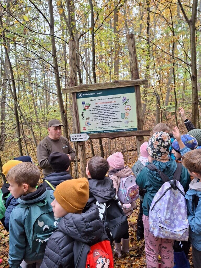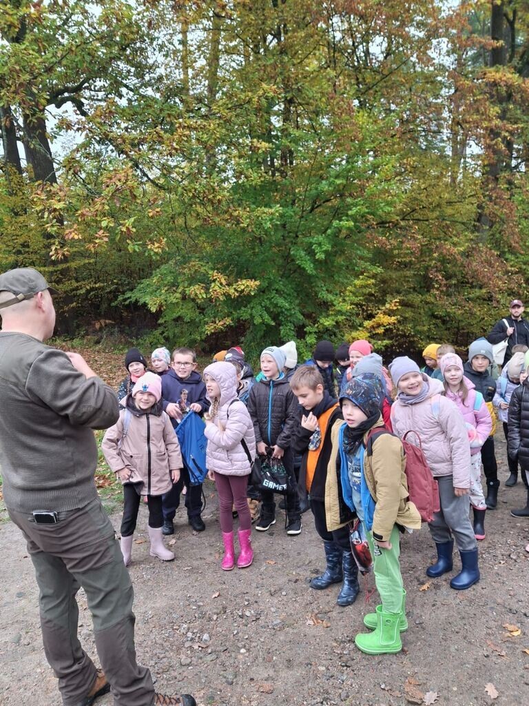 Kolejne klasy wybrały się na lekcję przyrody do Uroczyska w Drętowie. Wycieczka klas 2a i 2b była podsumowaniem działu o lesie z edukacji przyrodniczej. Zajęcia prowadził leśnik, który w bardzo ciekawy sposób opowiadał o rodzajach lasów, drzewach w nich występujących oraz o darach lasu. Przypomniał również o przygotowaniach zwierząt do zimy i o tym, że powinniśmy również pamiętać o zwierzętach, które nie zapadają w sen zimowy oraz o ptakach pozostających w Polsce na chłodniejsze miesiące.